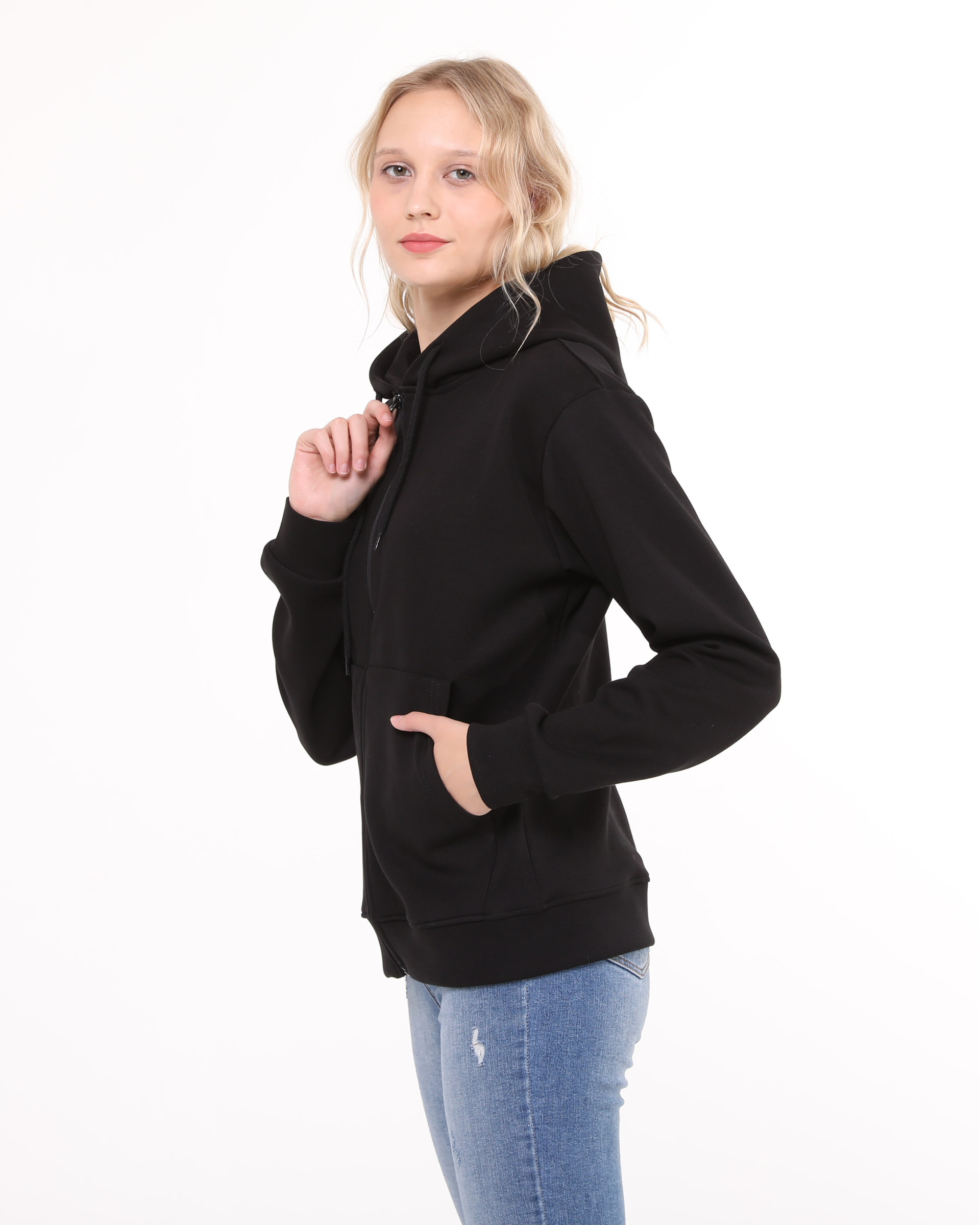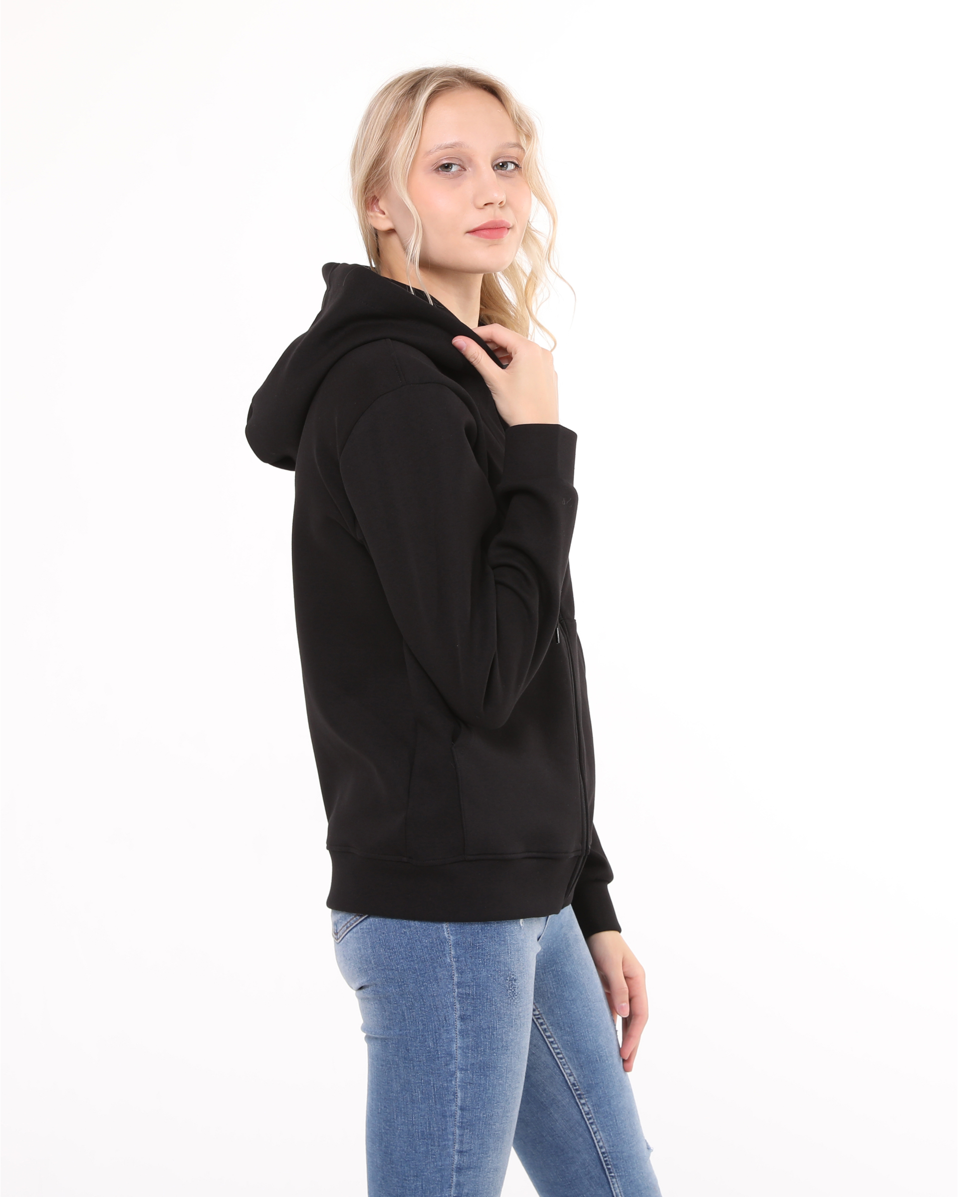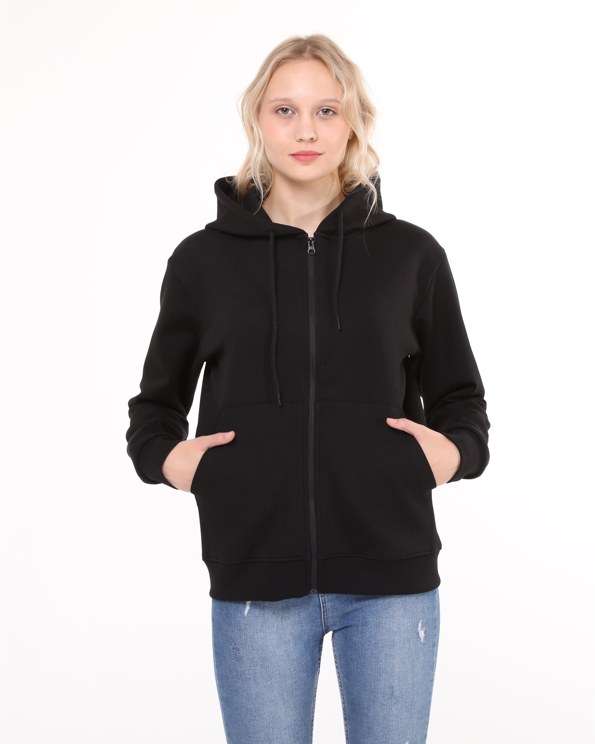 This hooded sweatshirt with zipper is made from double-face fabric with lycra. Its durable fabric and suitability for all four seasons make it a highly preferred, high-quality sweatshirt model designed for your comfort.