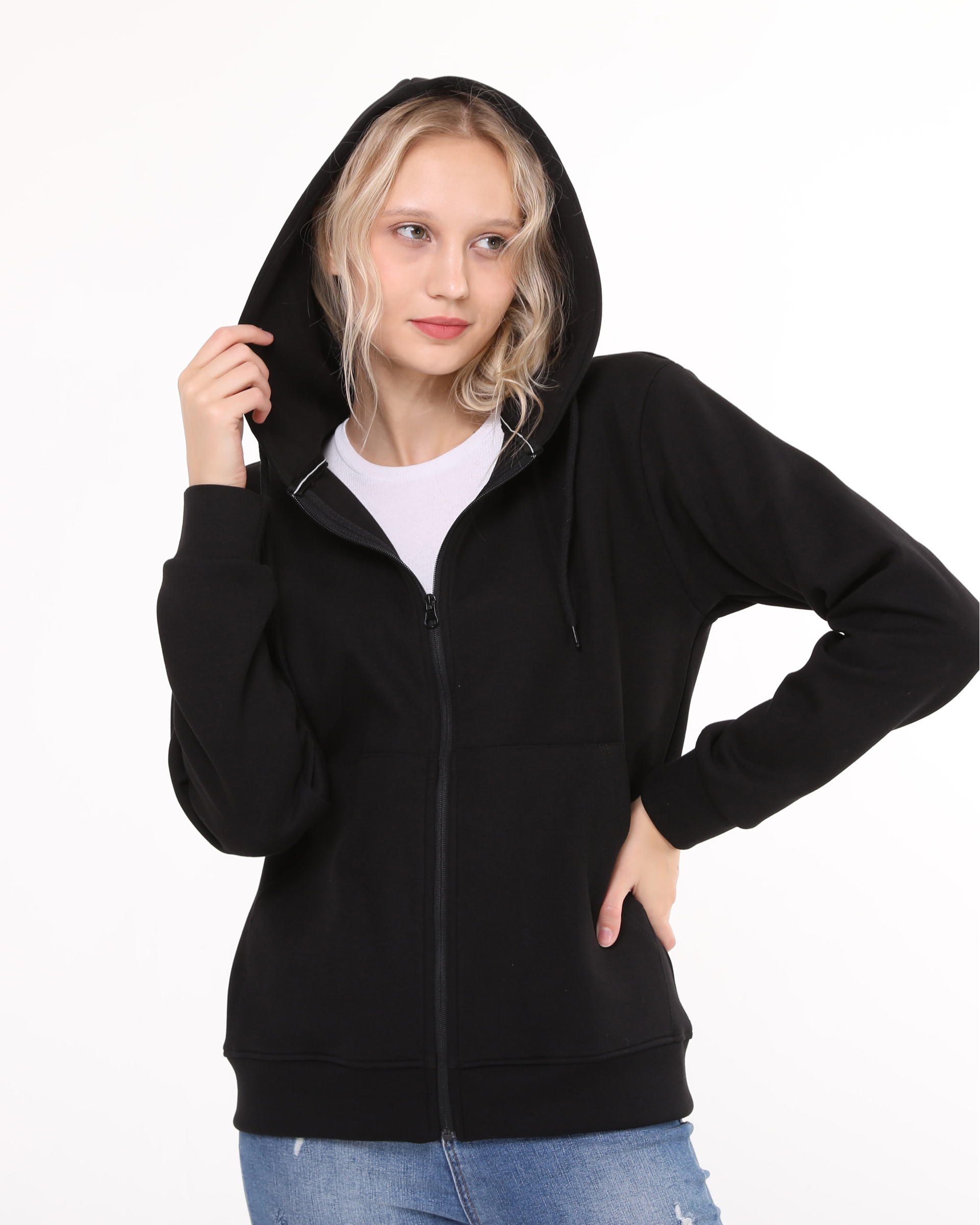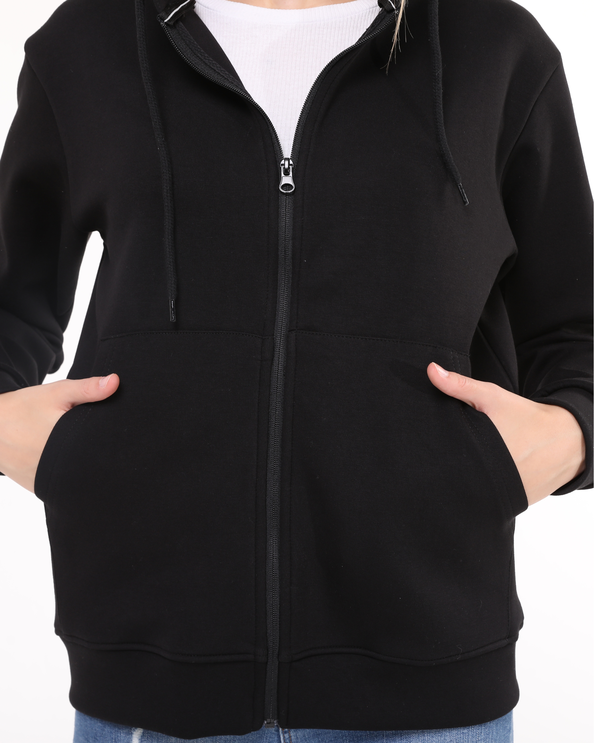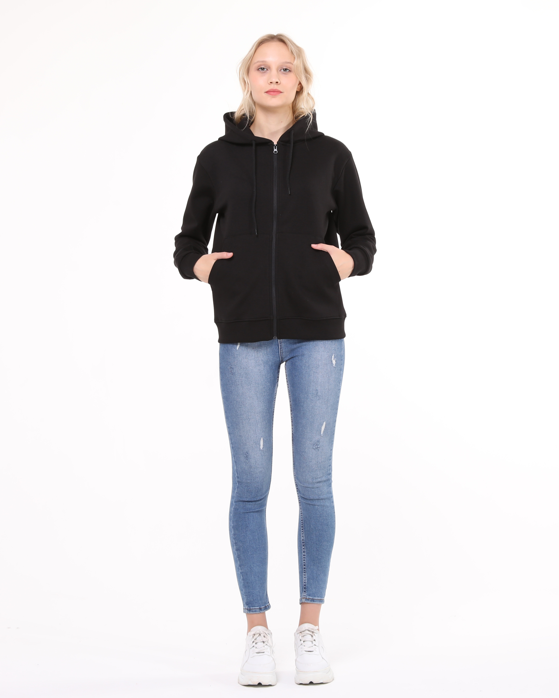 This hooded sweatshirt with zipper is made from double-face fabric with lycra. Its durable fabric and suitability for all four seasons make it a highly preferred, high-quality sweatshirt model designed for your comfort.