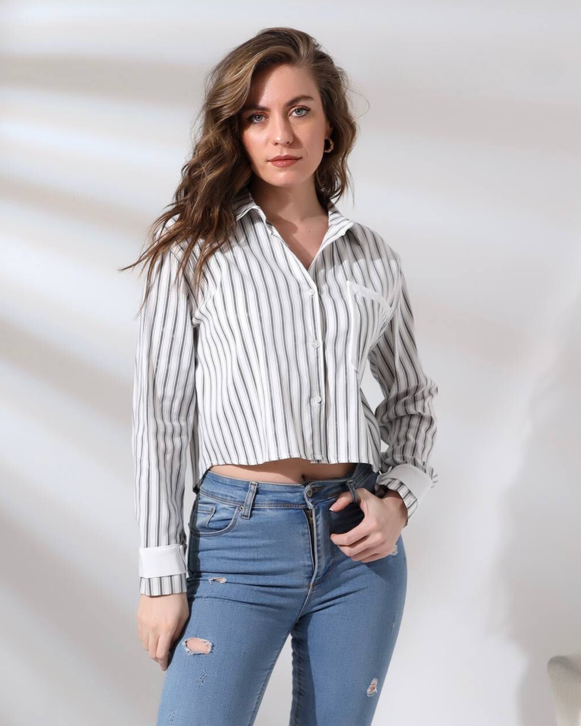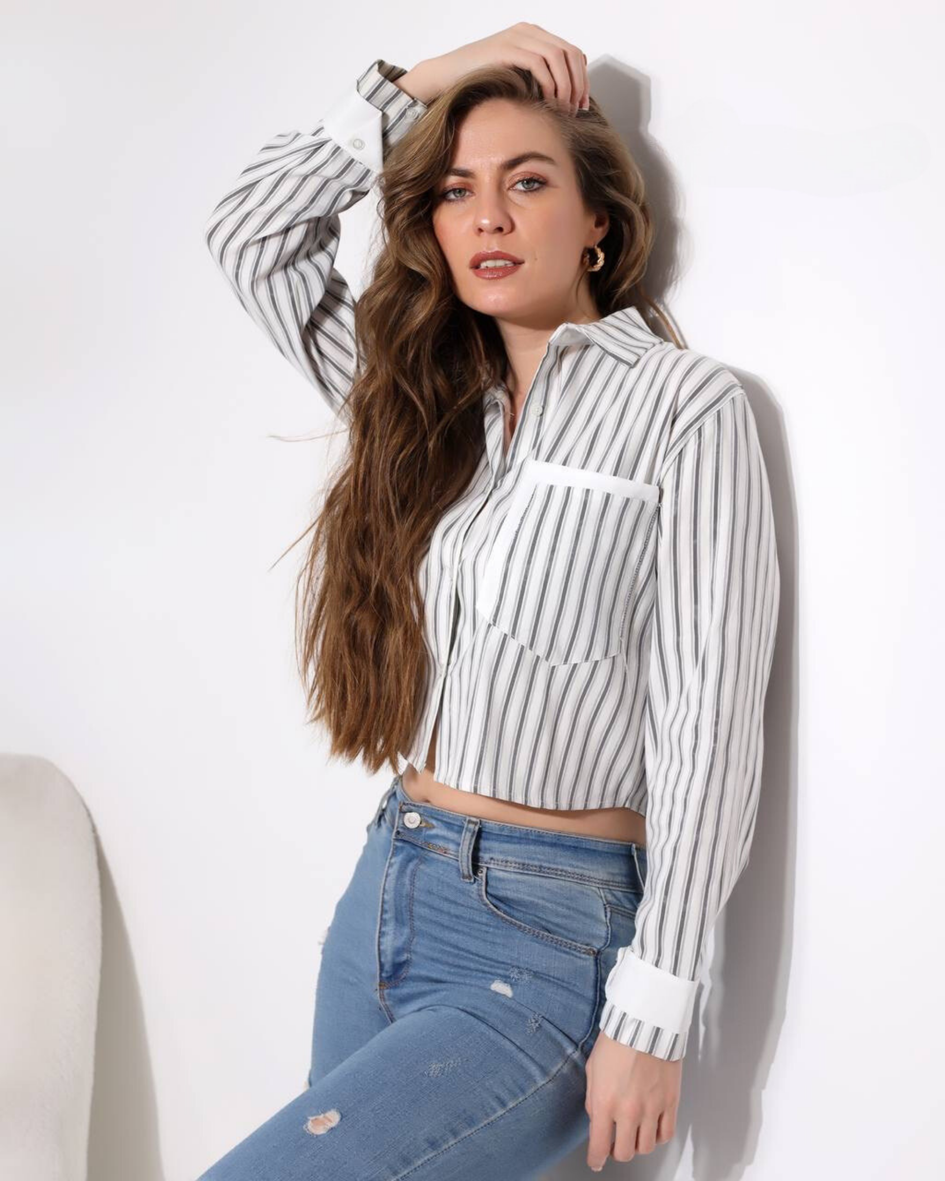 Marka Best Crop Satin Shirt White