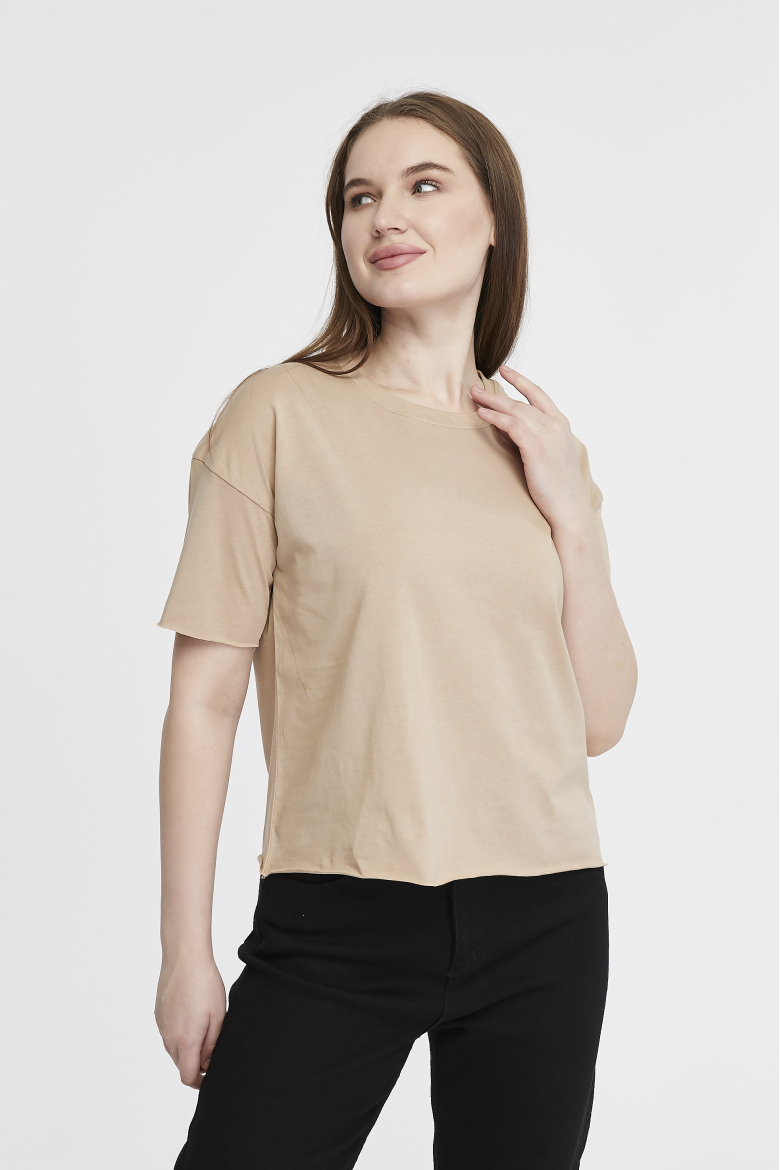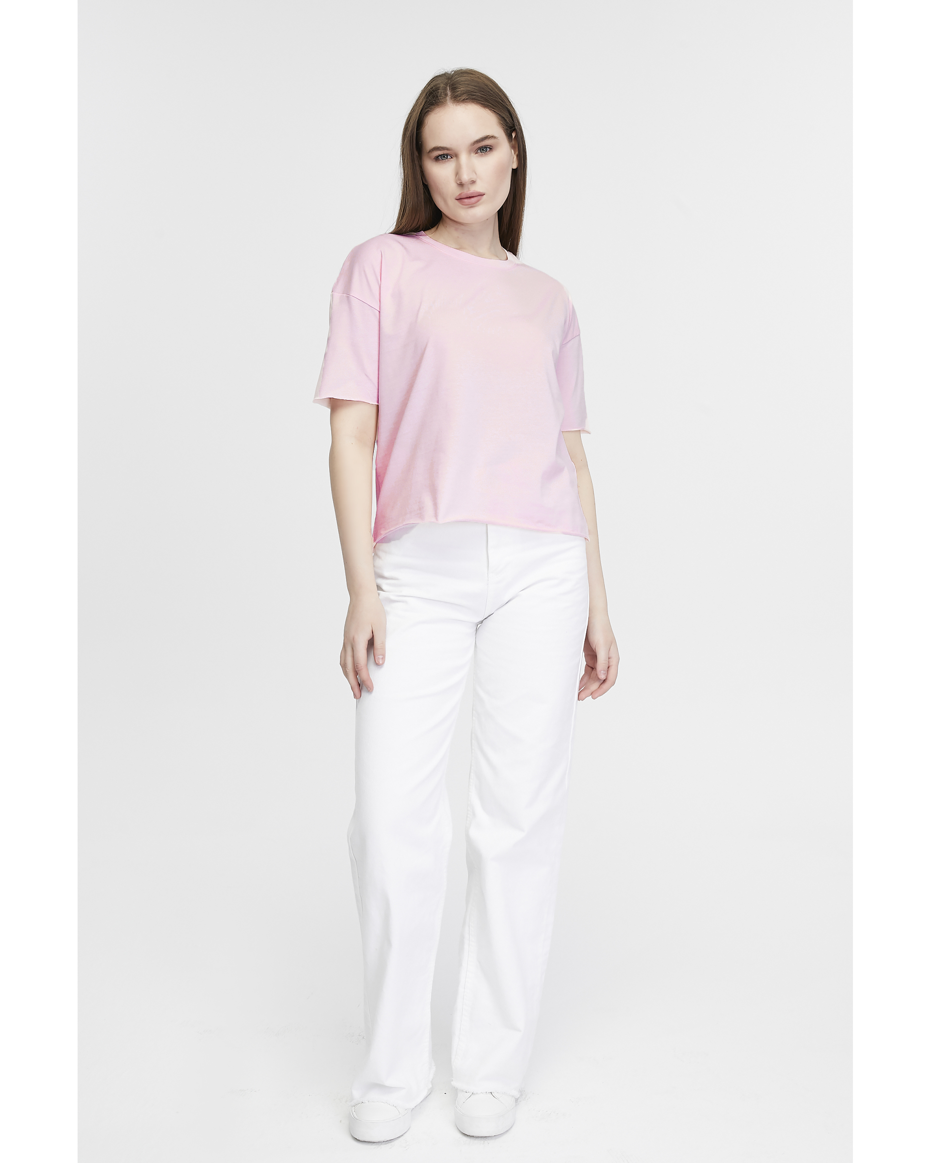 Crop t-shirts can be found in various cuts and styles. Some crop t-shirt models may be straight-cut and simple, while others may include different patterns, prints, lettering, or graphics. Also, some crop t-shirts may have short sleeves, long sleeves, or sleeveless designs. Crop t-shirts are often paired with high-waisted pants, skirts, or leggings.