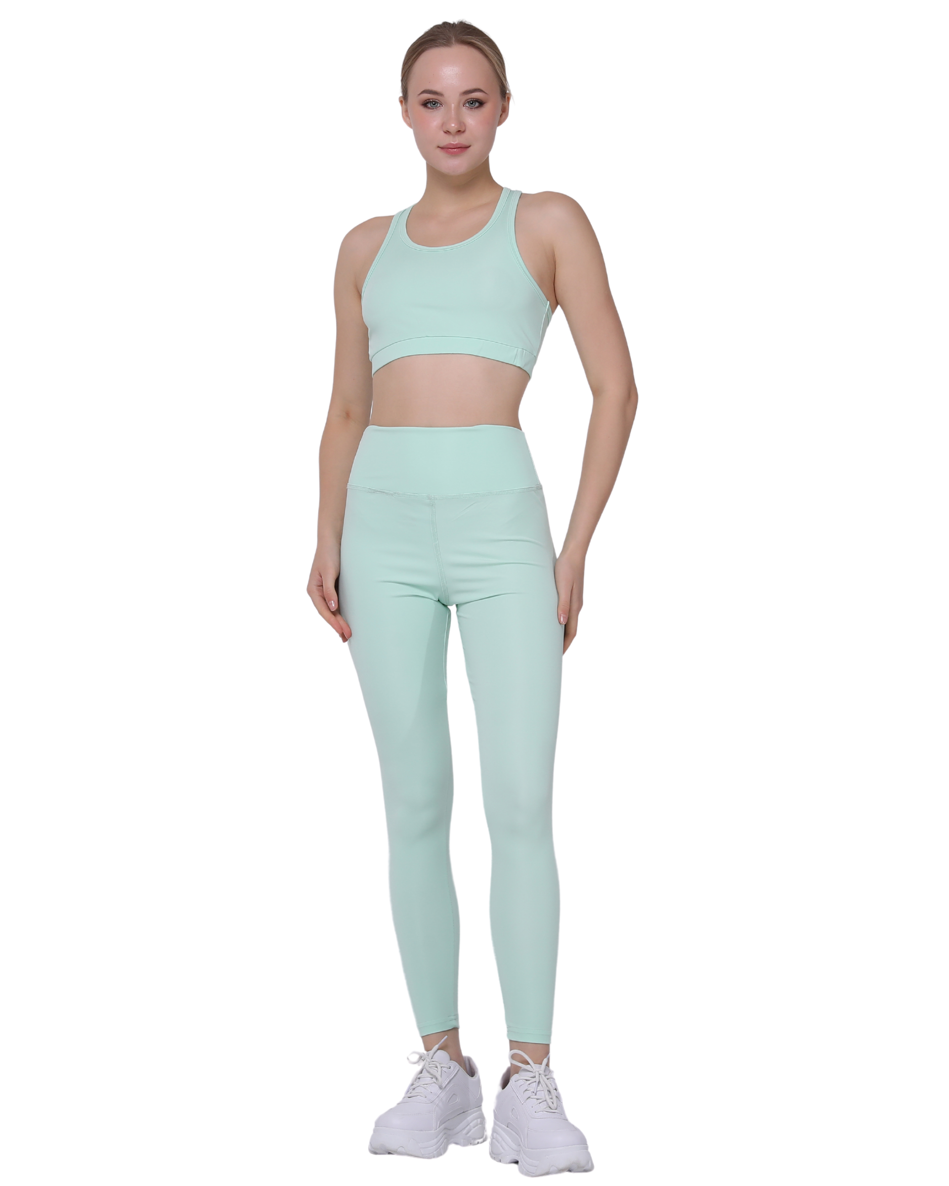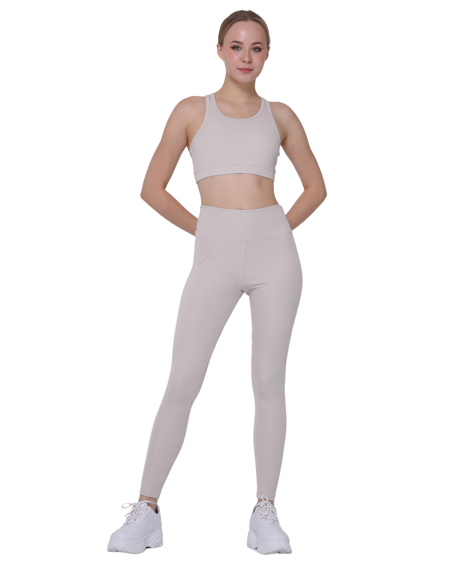 High Waist Support Leggings and Crop Sport Set, Ecru