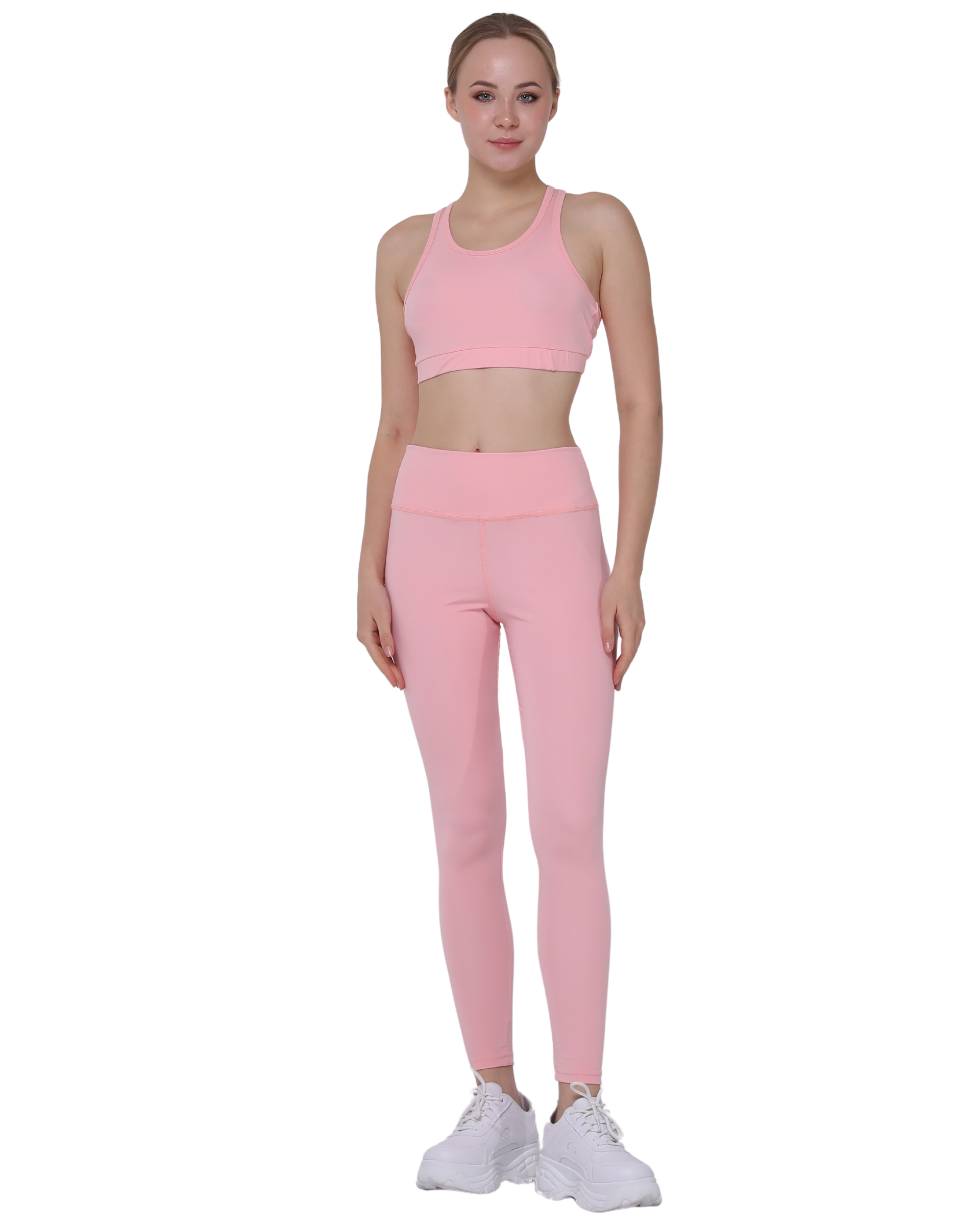 High Waist Support Leggings and Crop Top Sportswear Set in Pink