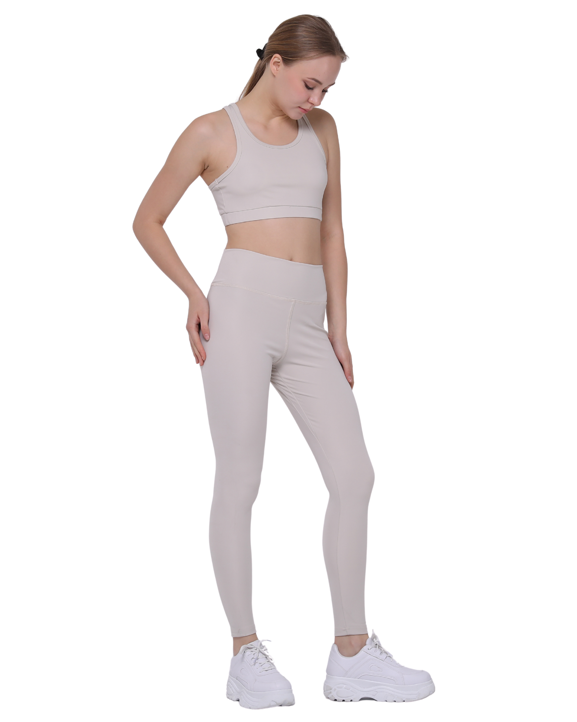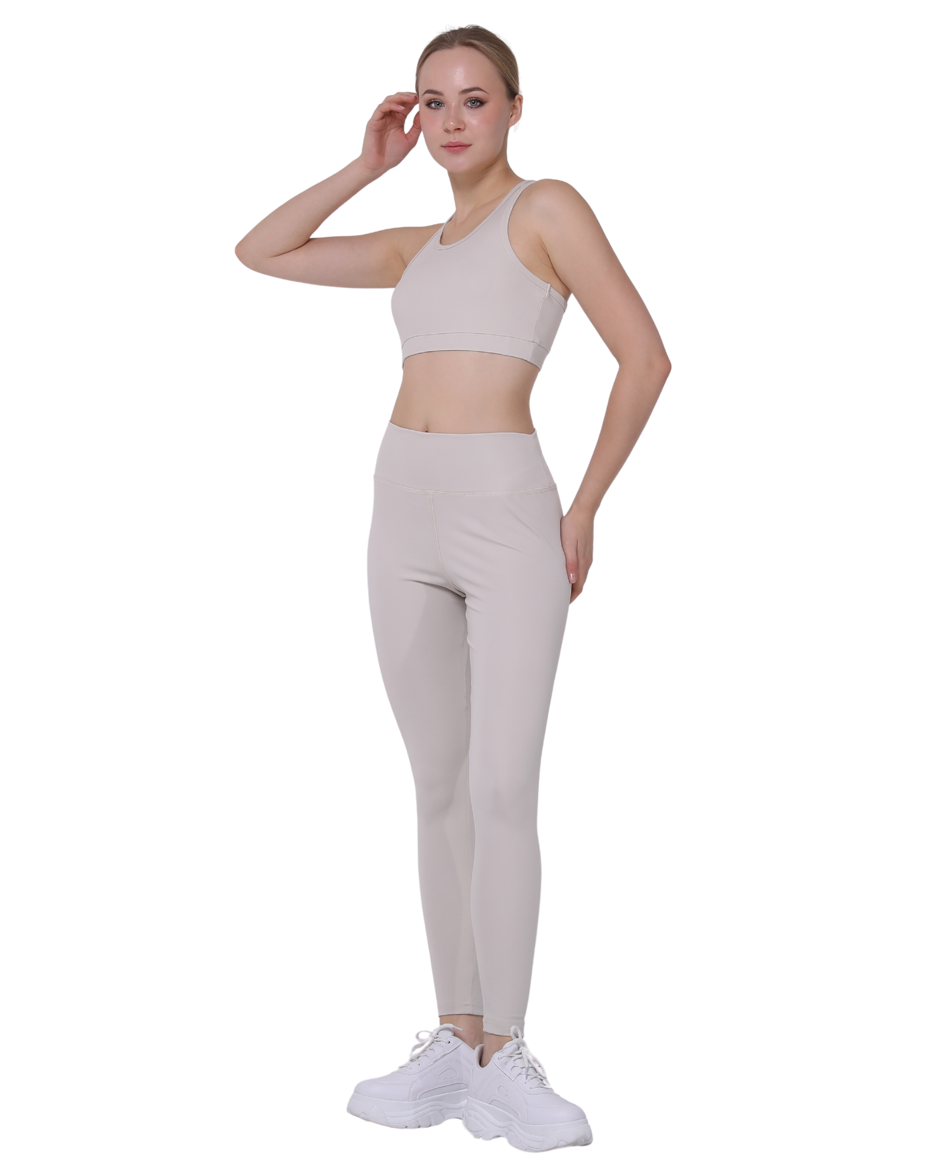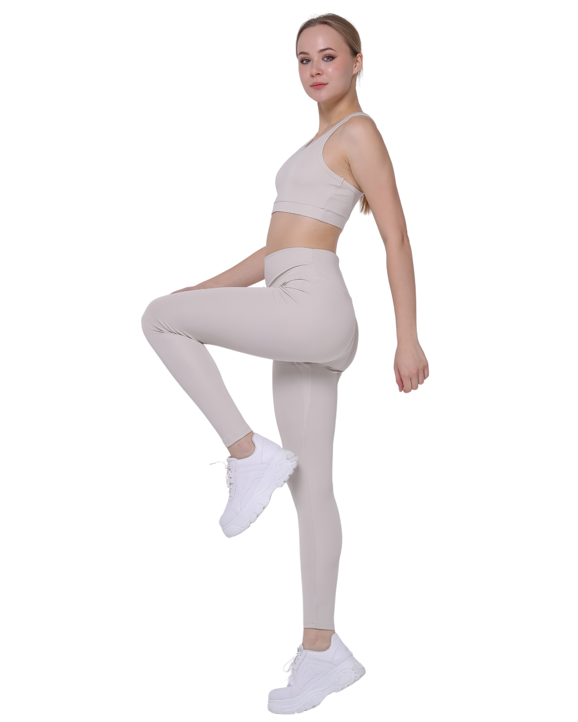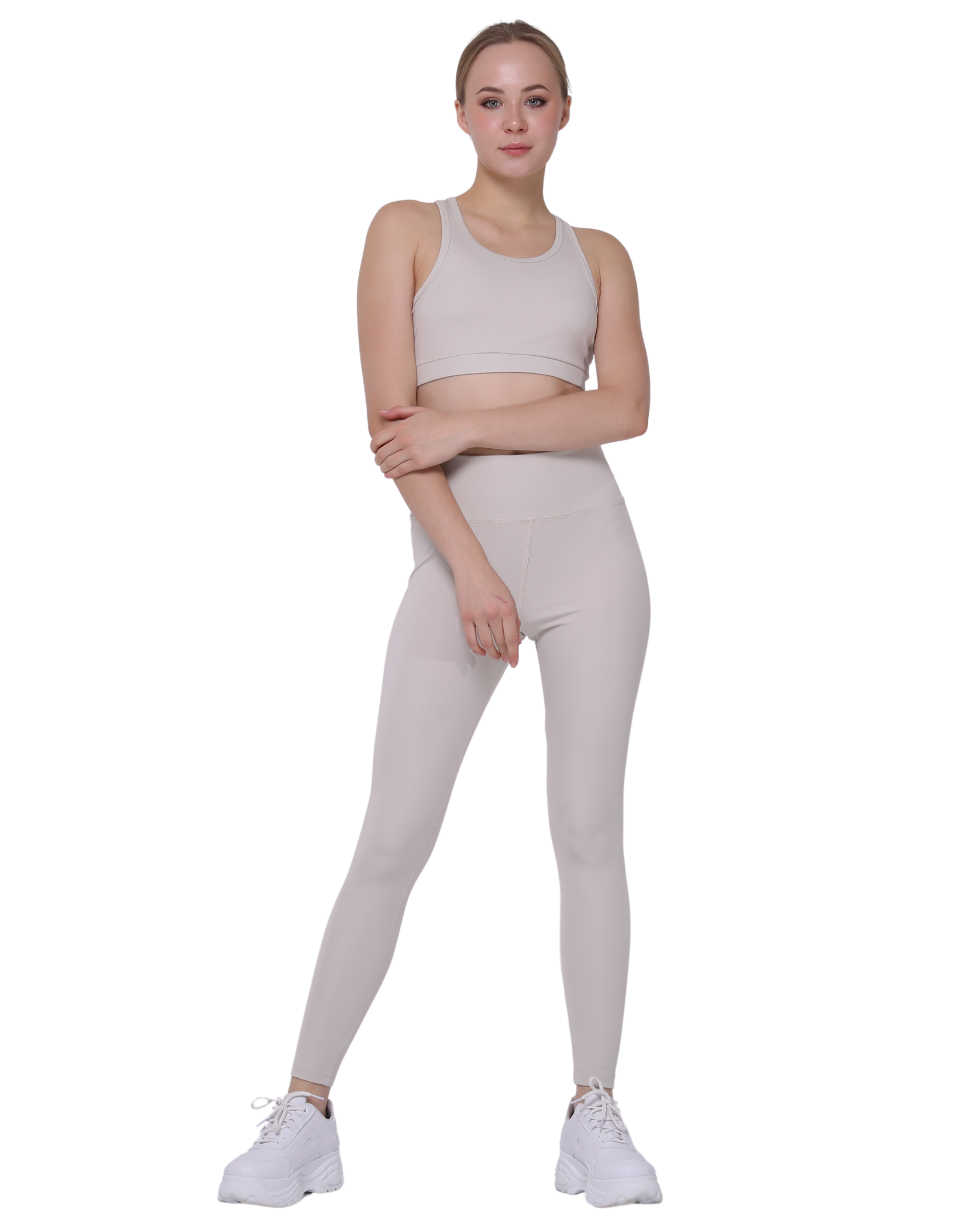 High Waist Support Leggings and Crop Sport Set, Ecru