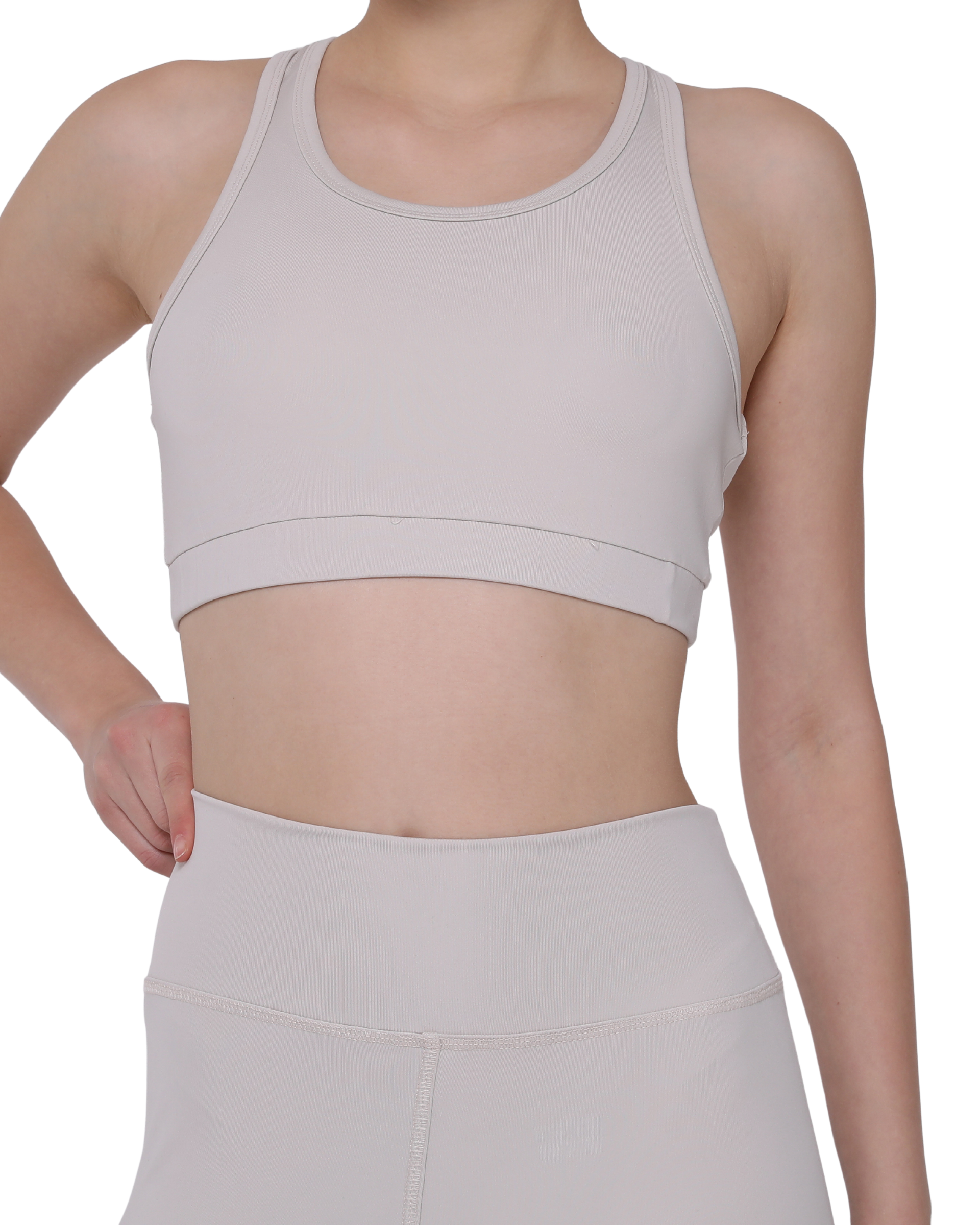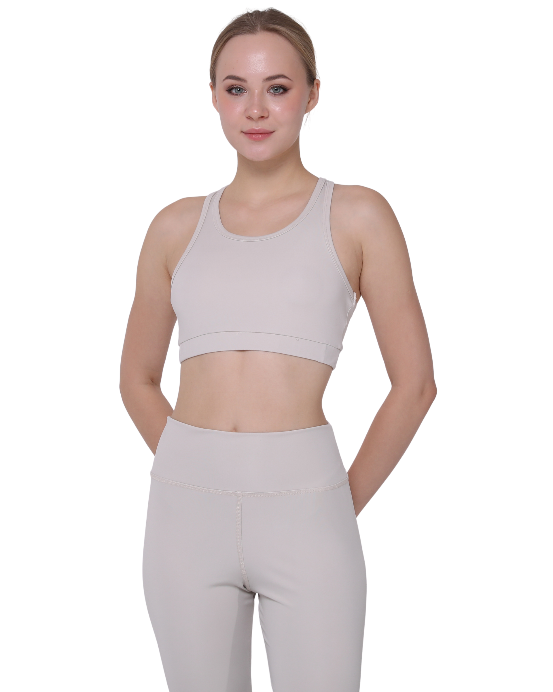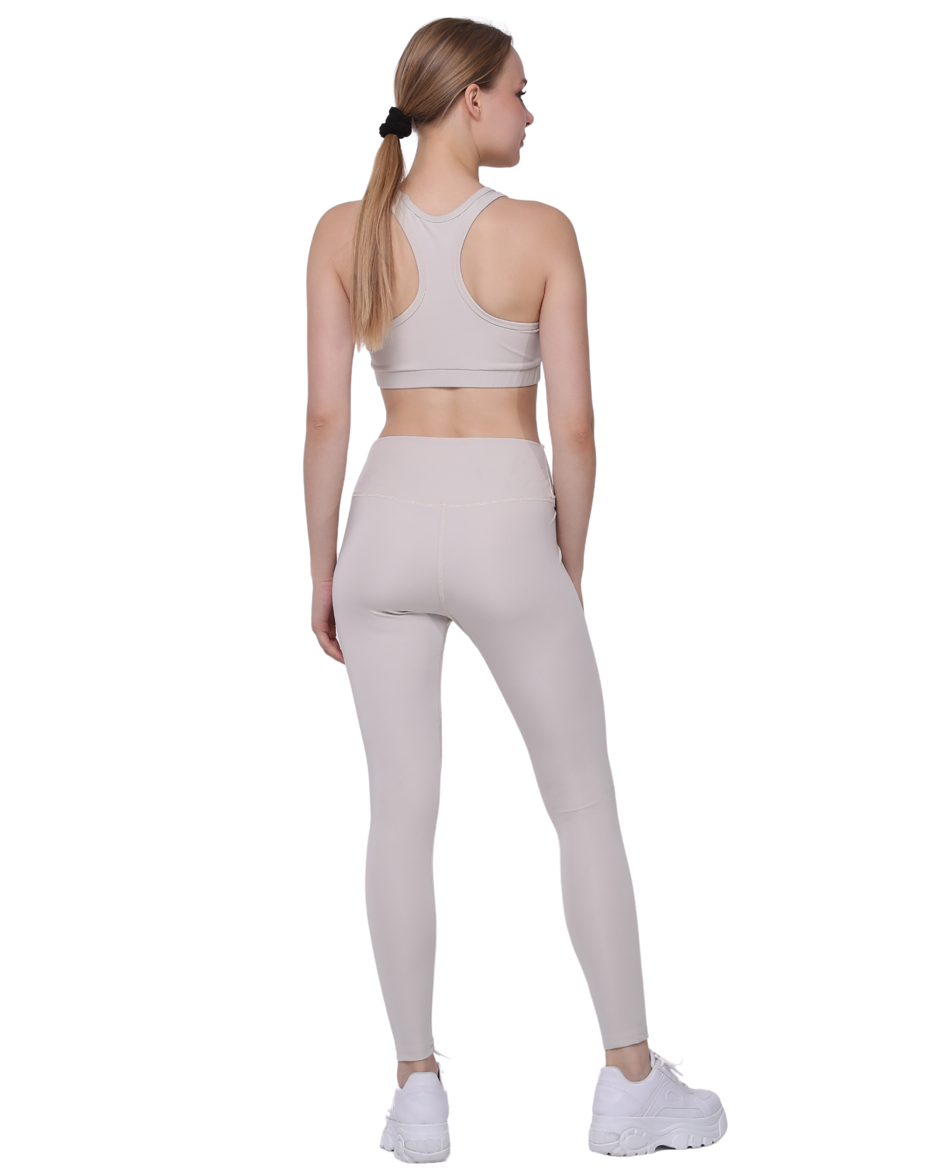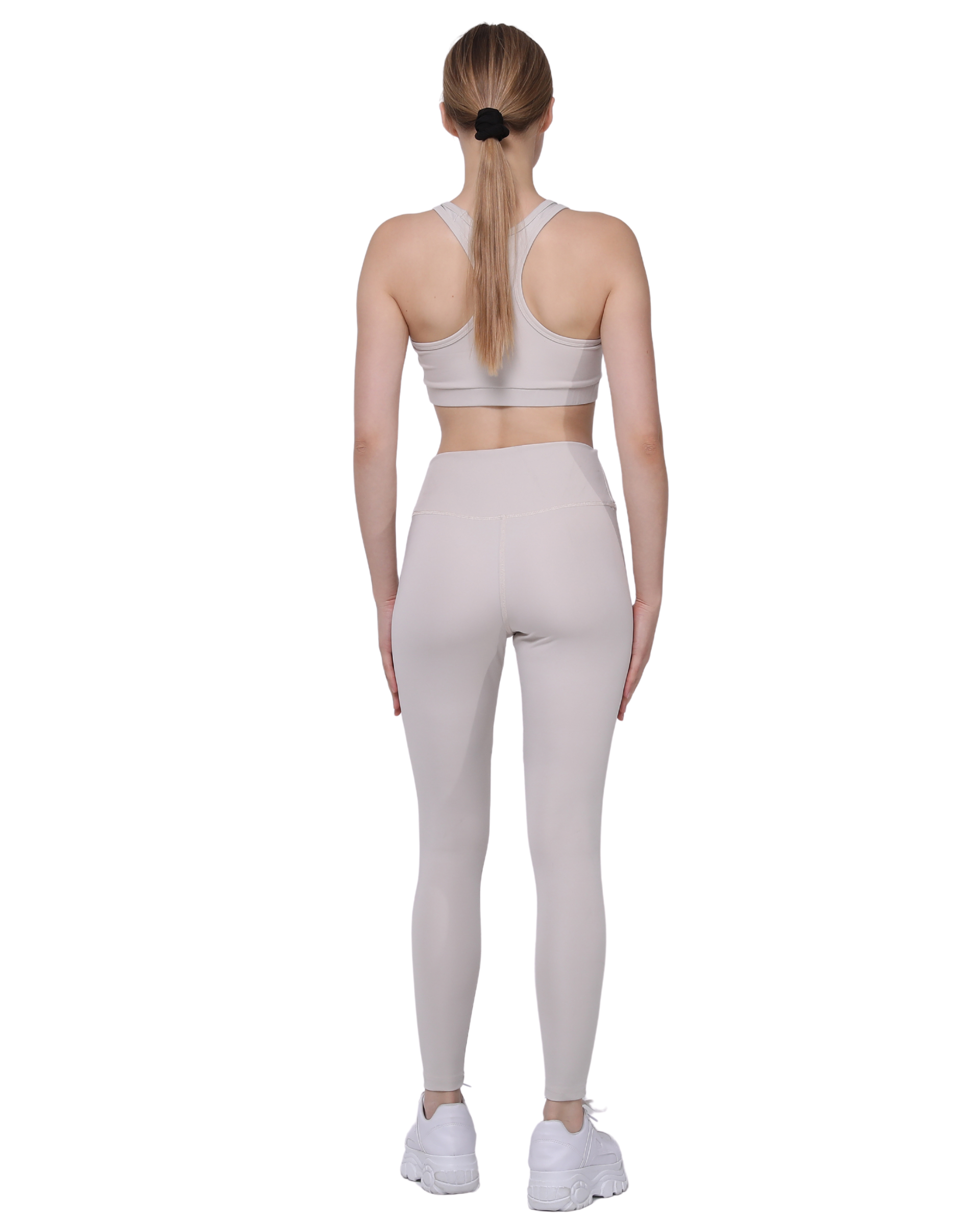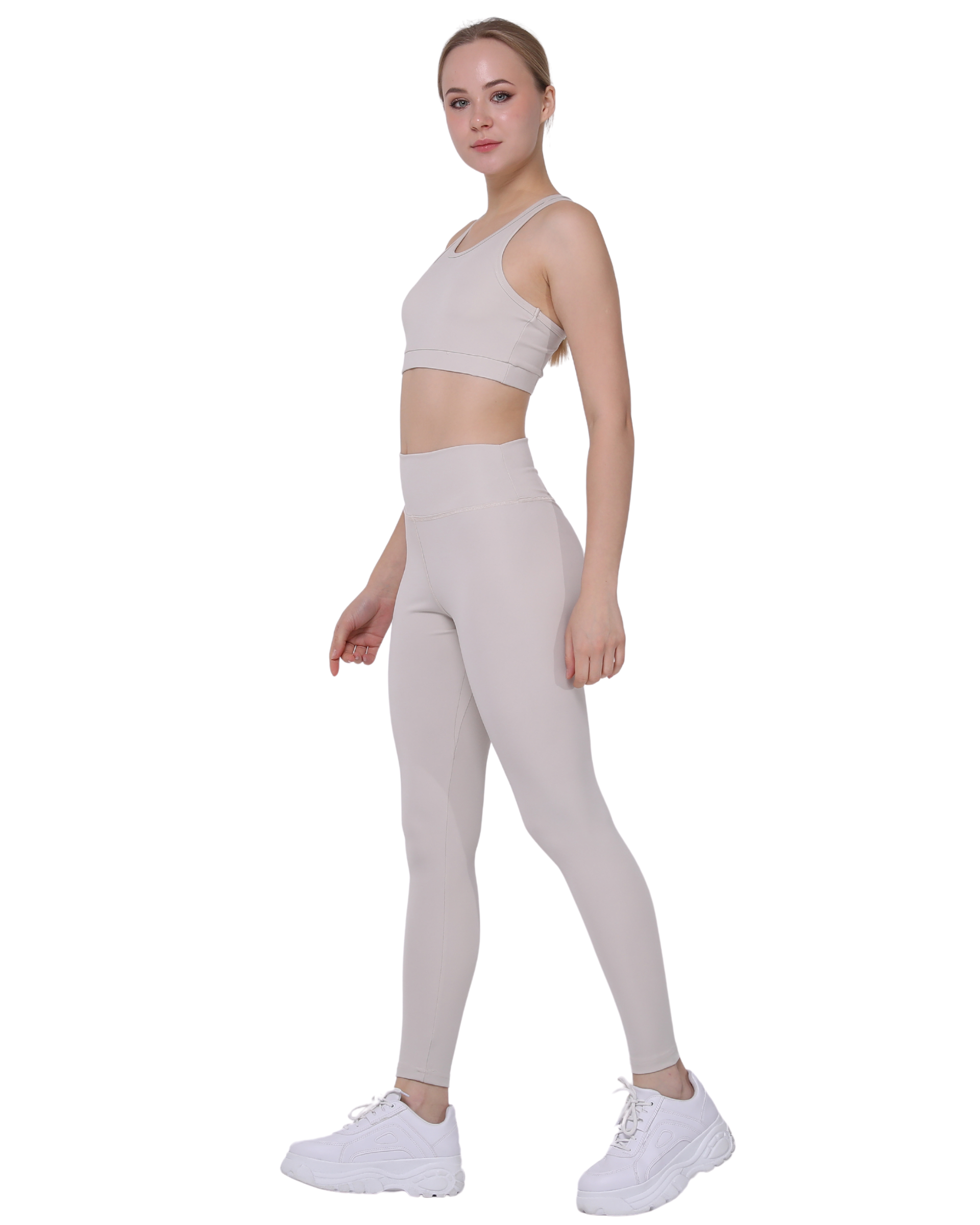 High Waist Support Leggings and Crop Sport Set, Ecru