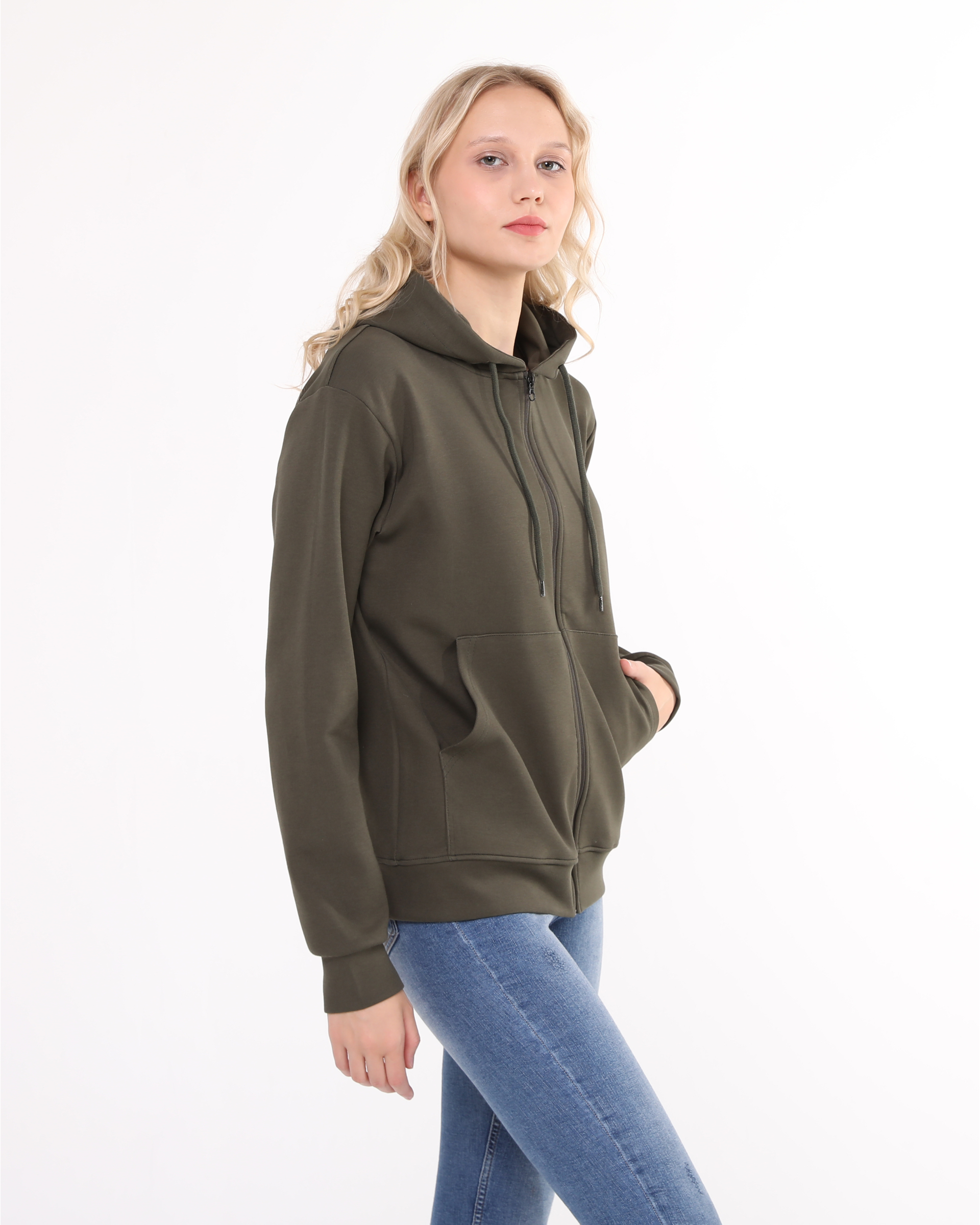 This hooded sweatshirt with zipper is made from double-face fabric with lycra. Its durable fabric and suitability for all four seasons make it a highly preferred, high-quality sweatshirt model designed for your comfort.