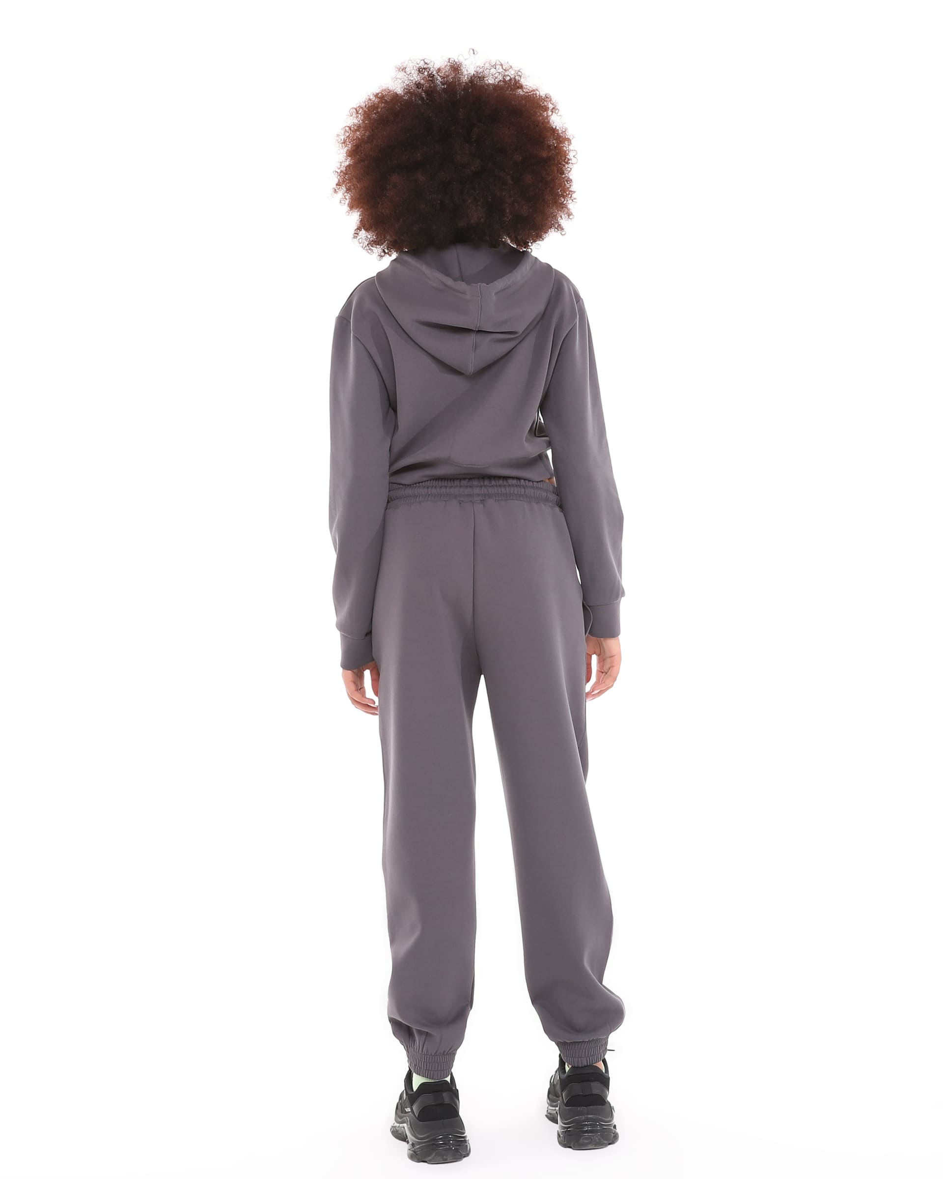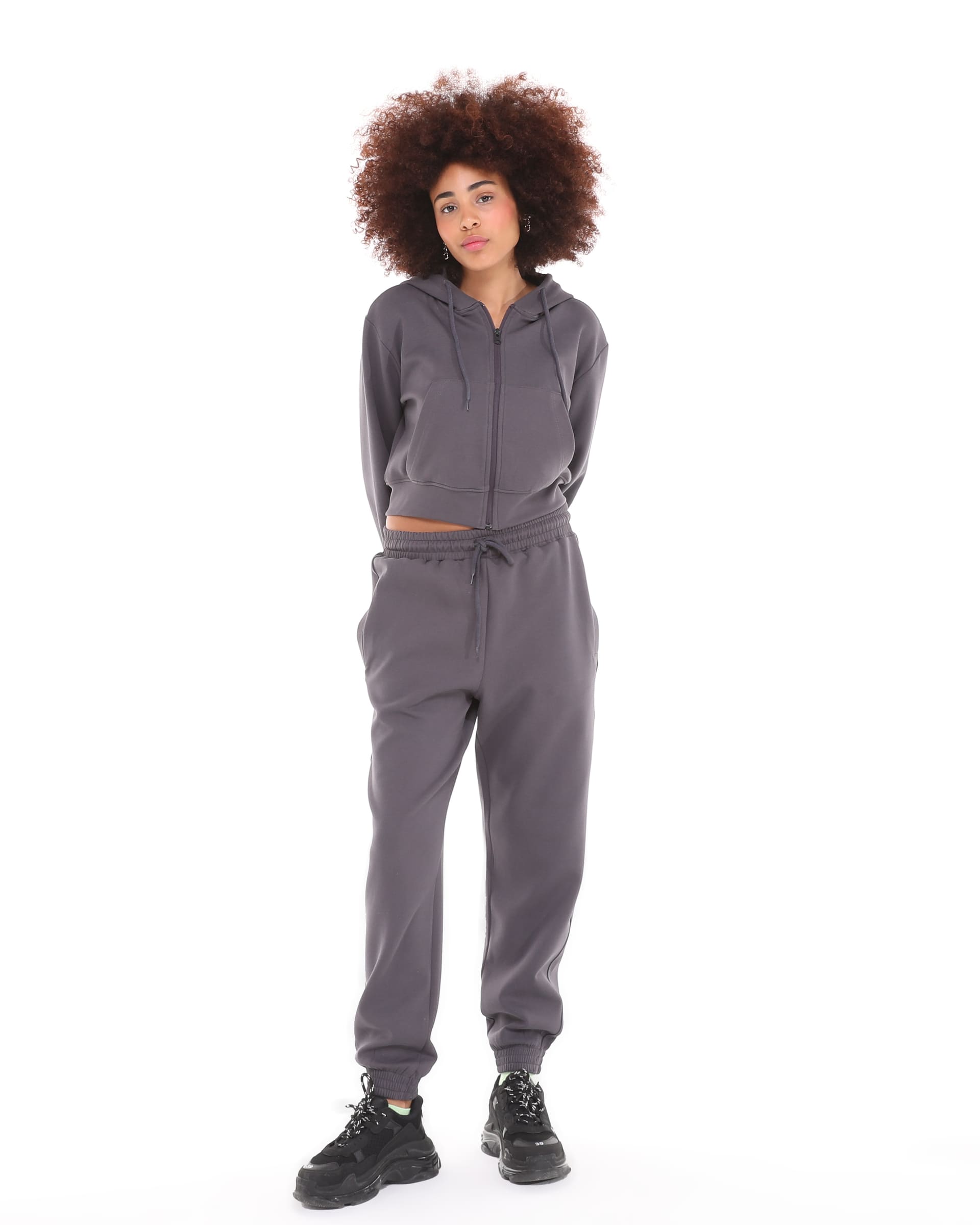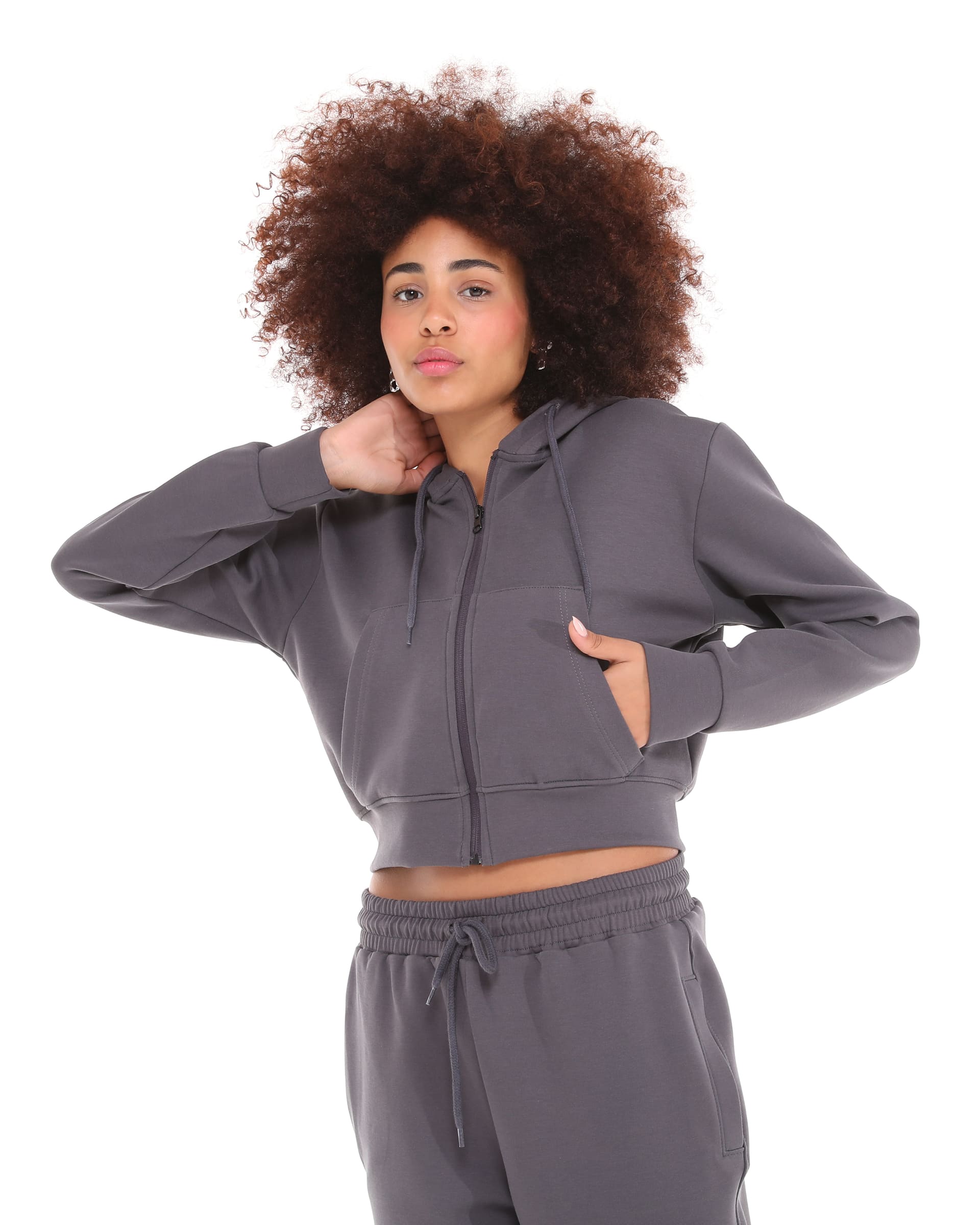 Hooded Crop Style Sweatshirt with Zipper Closure (Smoky Gray)