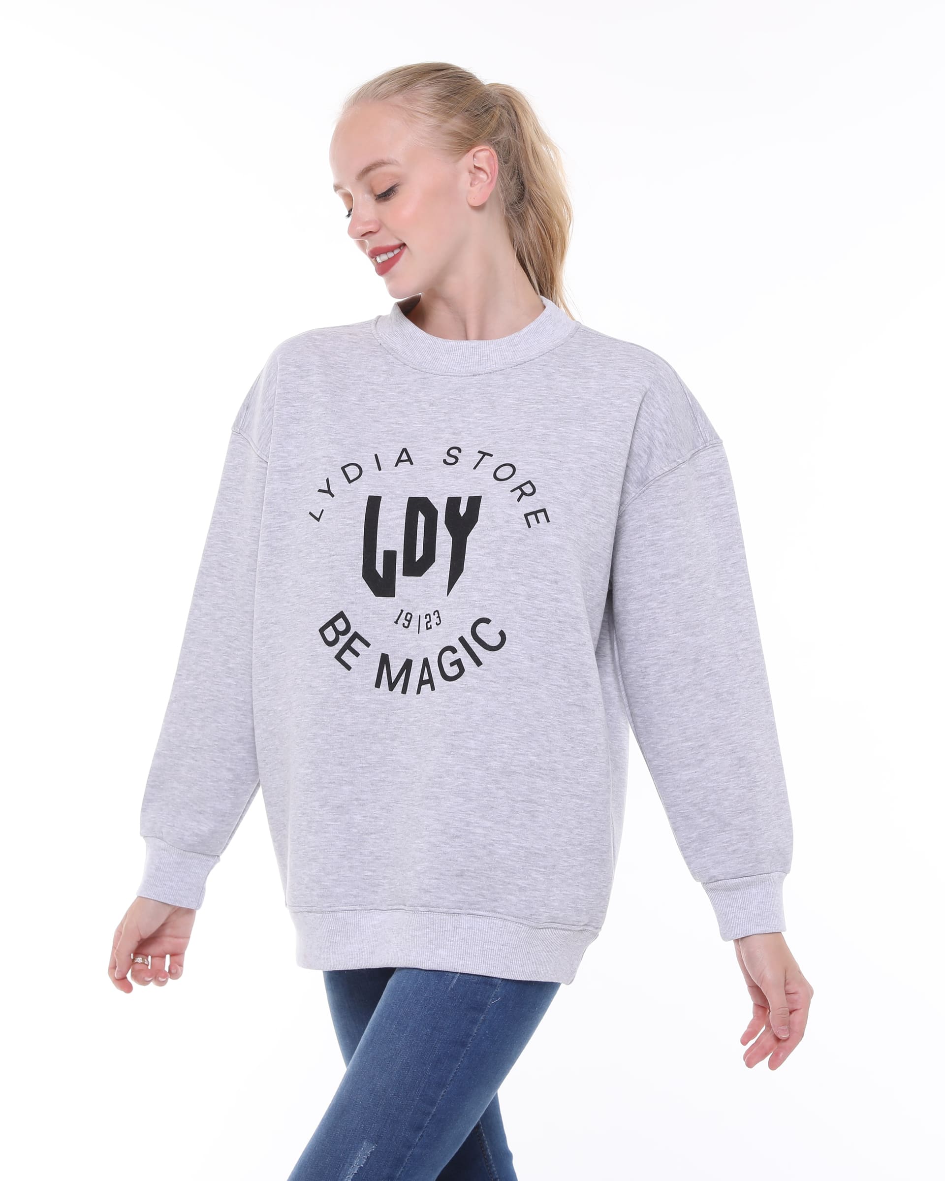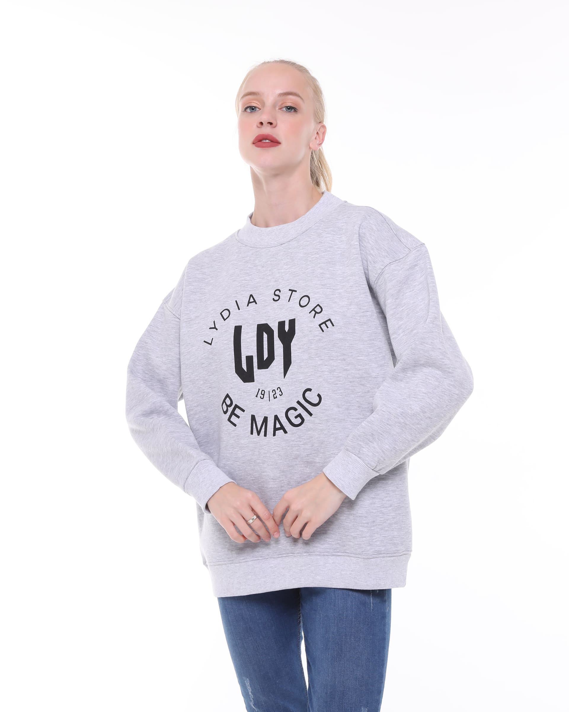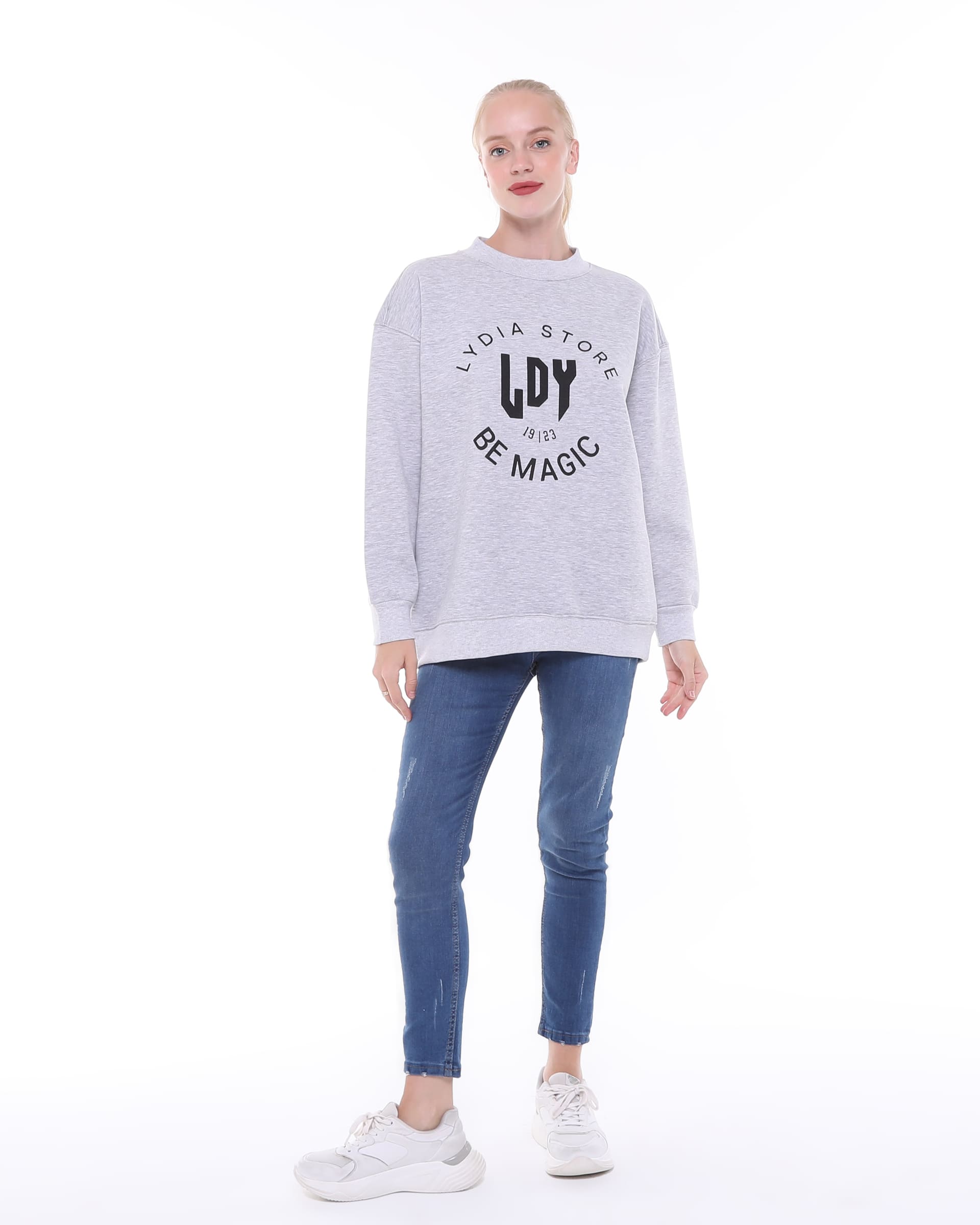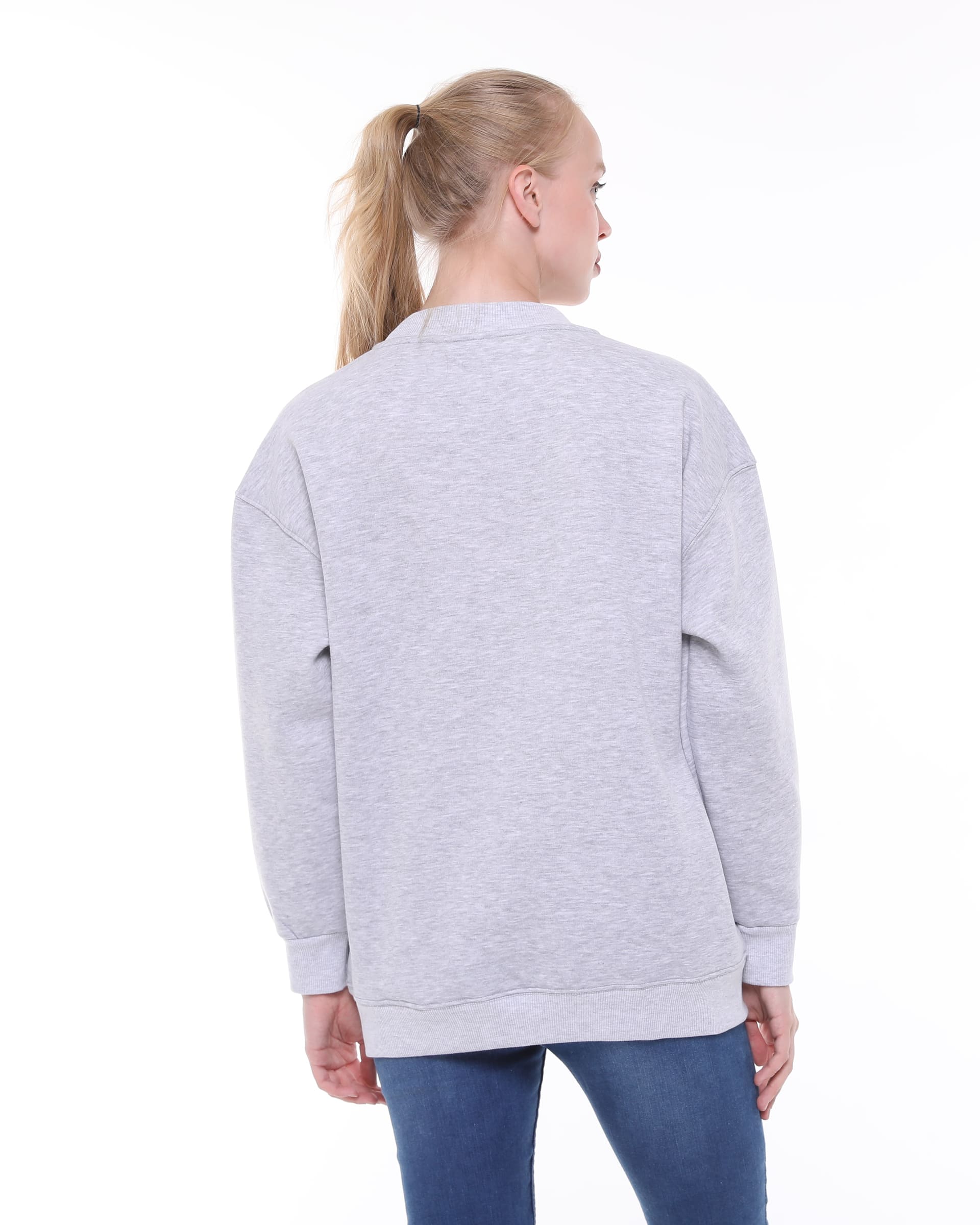 Marka Best Detailed Loose Crew Neck Grey Sweatshirt