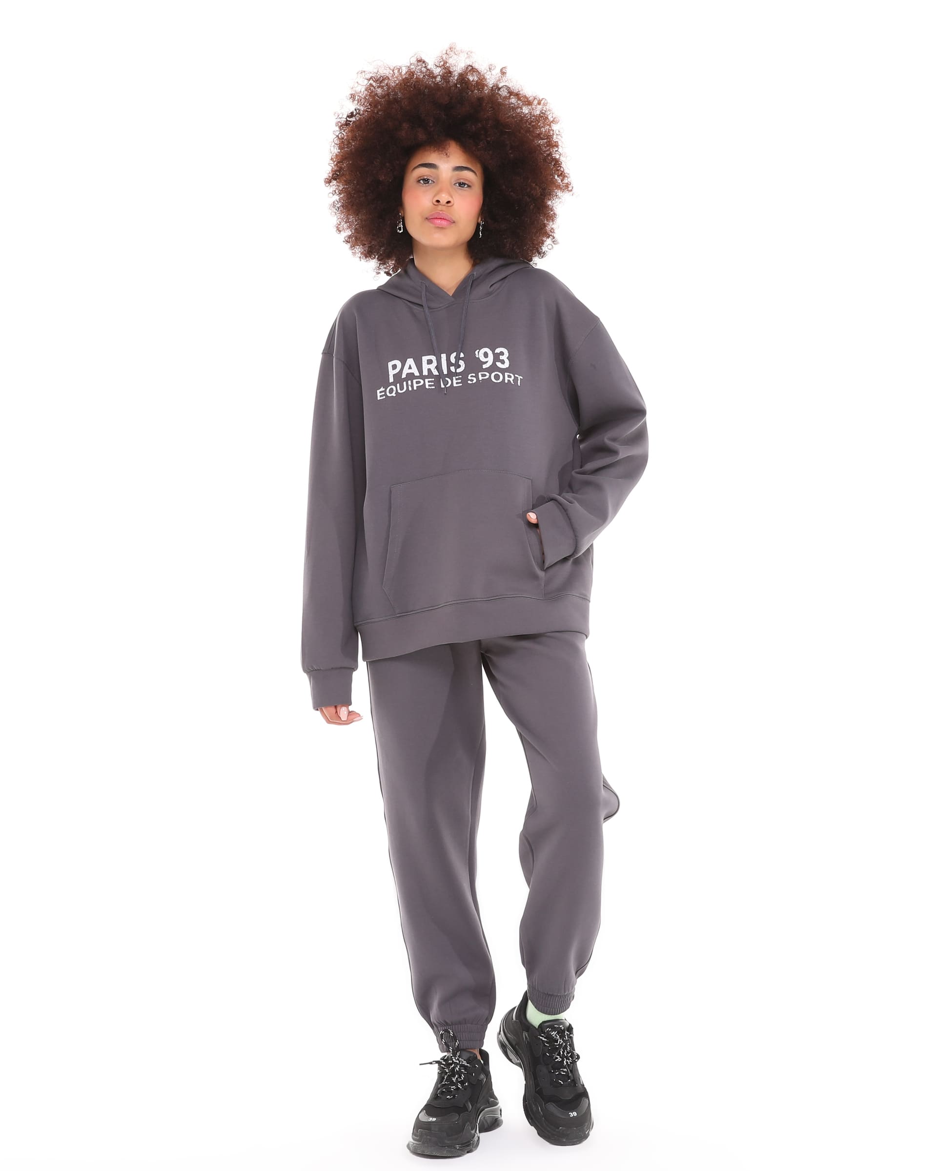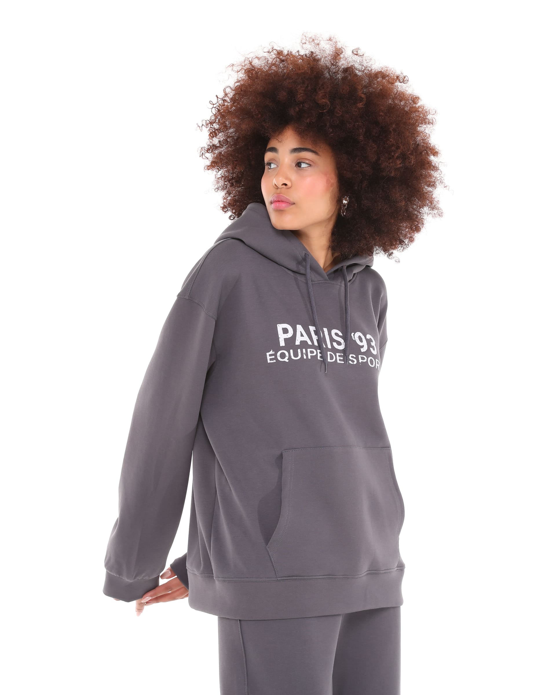 The Paris 93 Detailed Oversize Hooded Sweatshirt in Dark Gray is made from double-face fabric with lycra. Its durable fabric and suitability for all four seasons make it a highly preferred, high-quality sweatshirt model designed for your comfort.