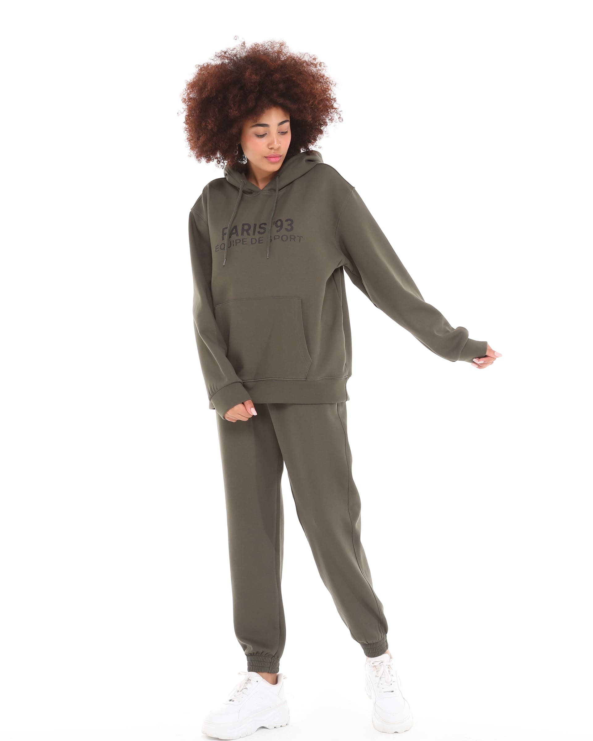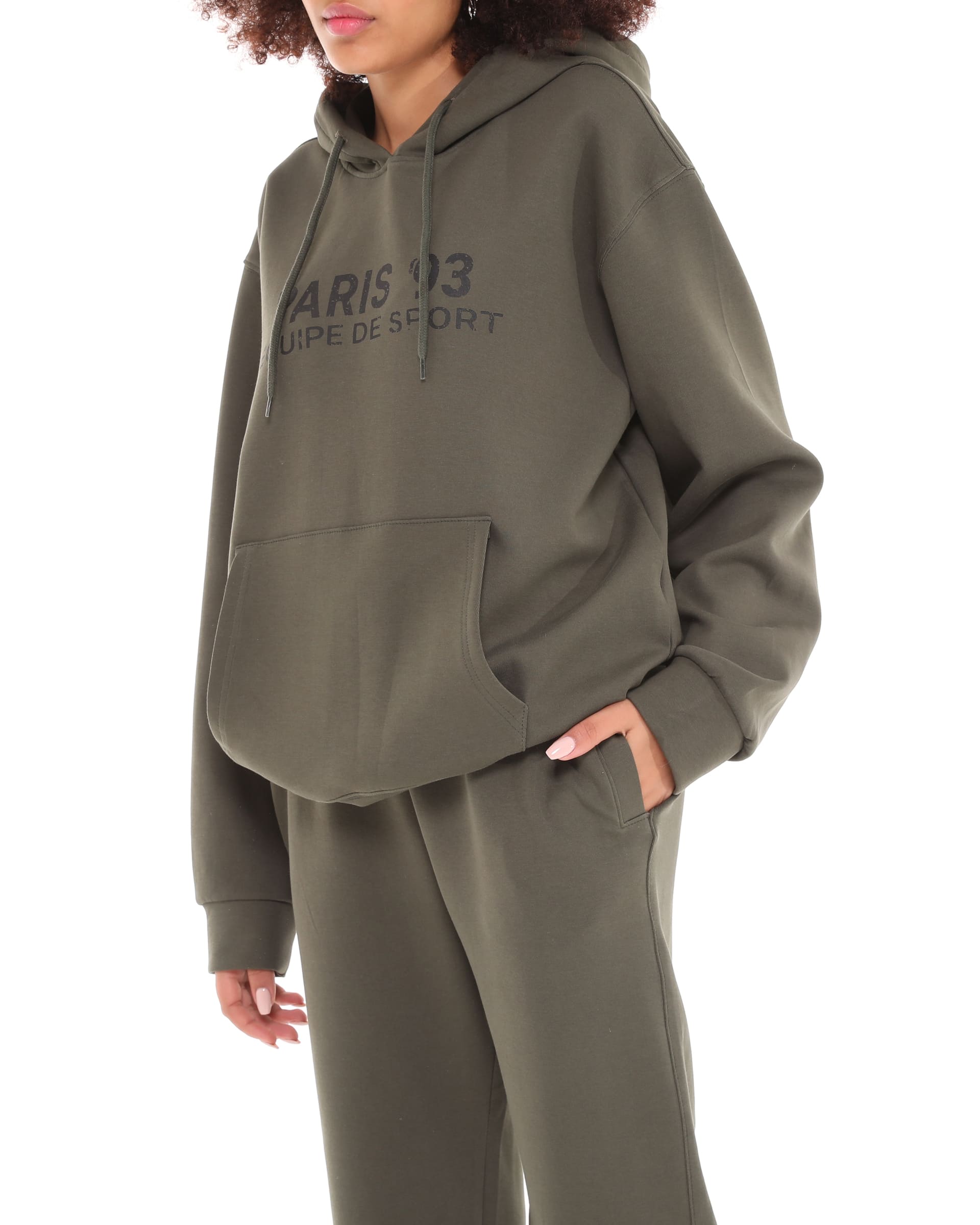 Paris 93 Detailed Oversize Hooded Khaki Sweatshirt