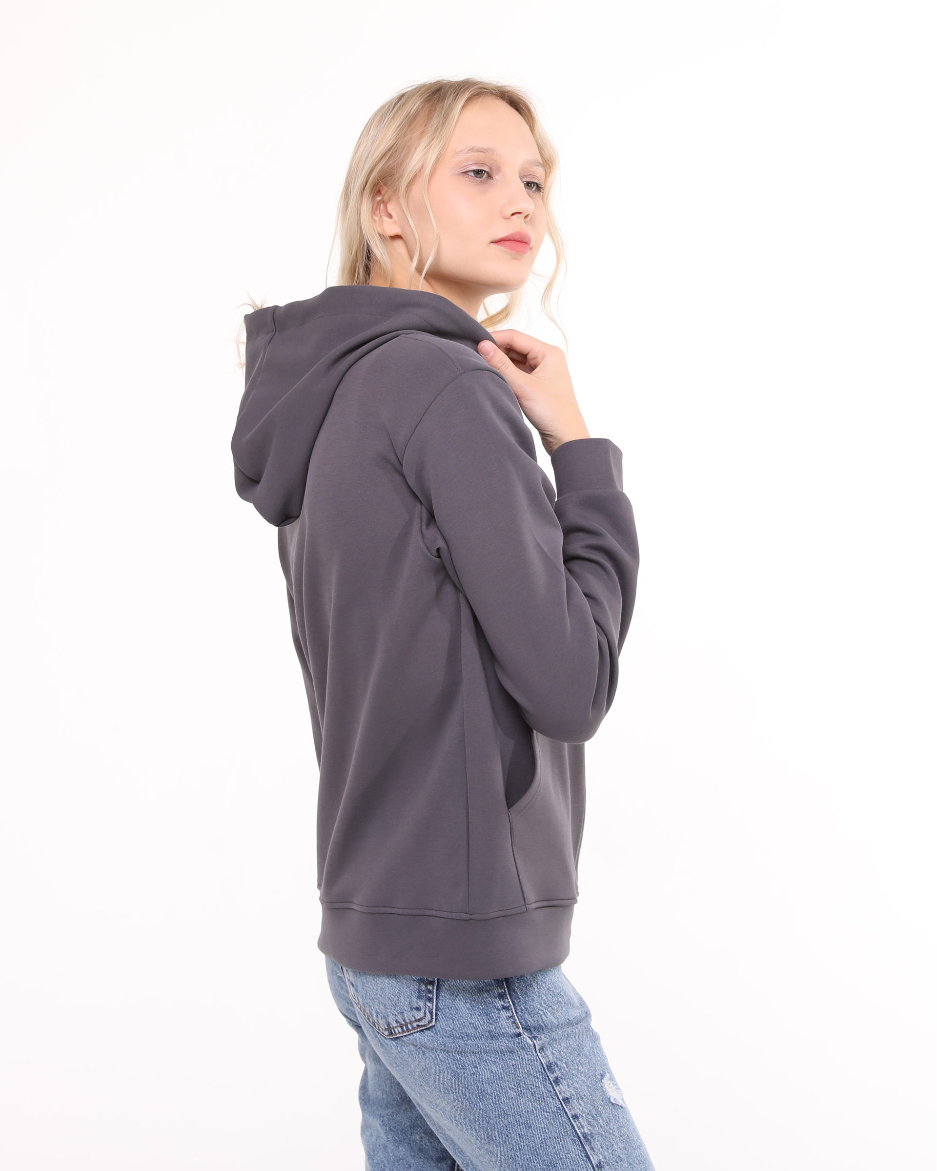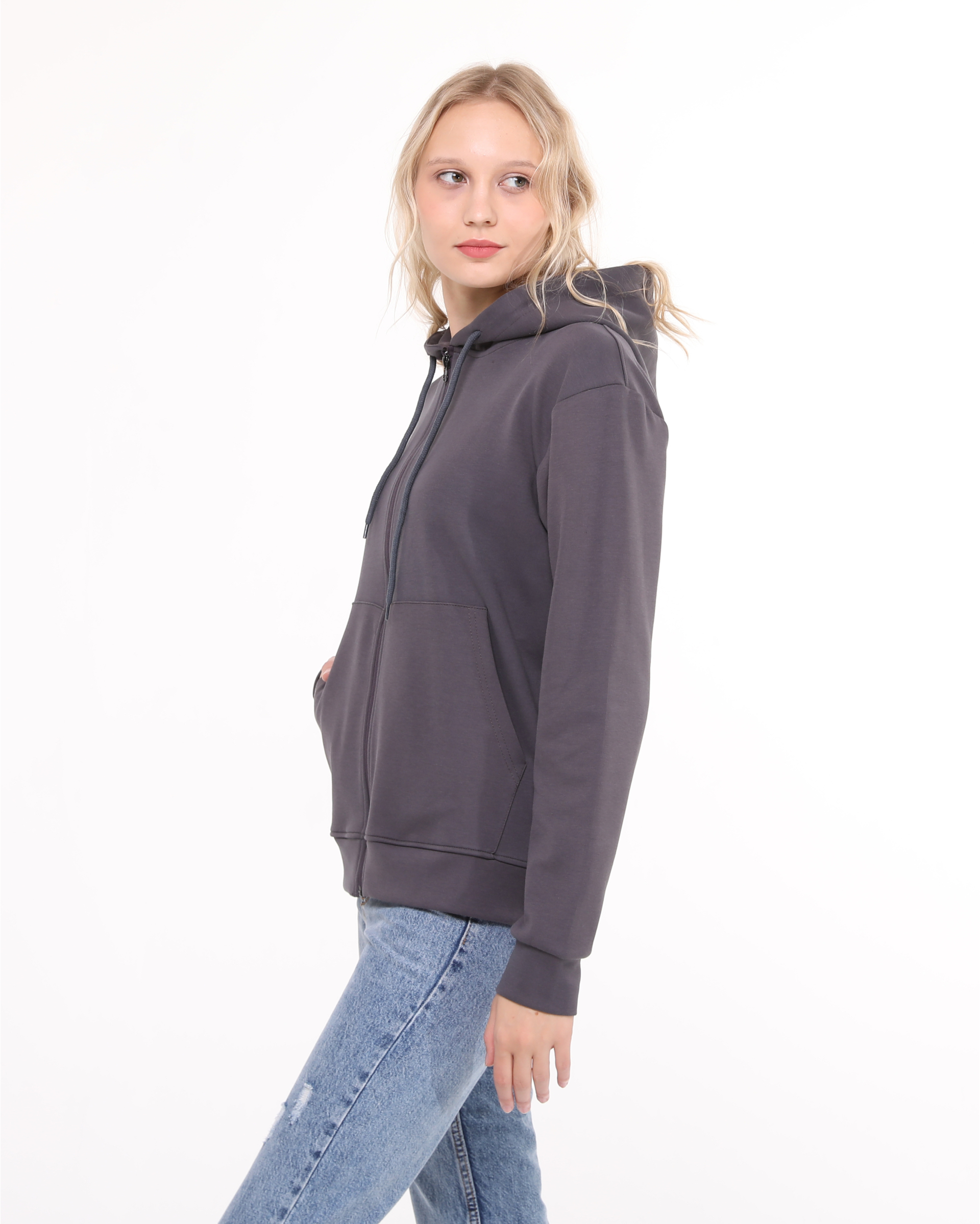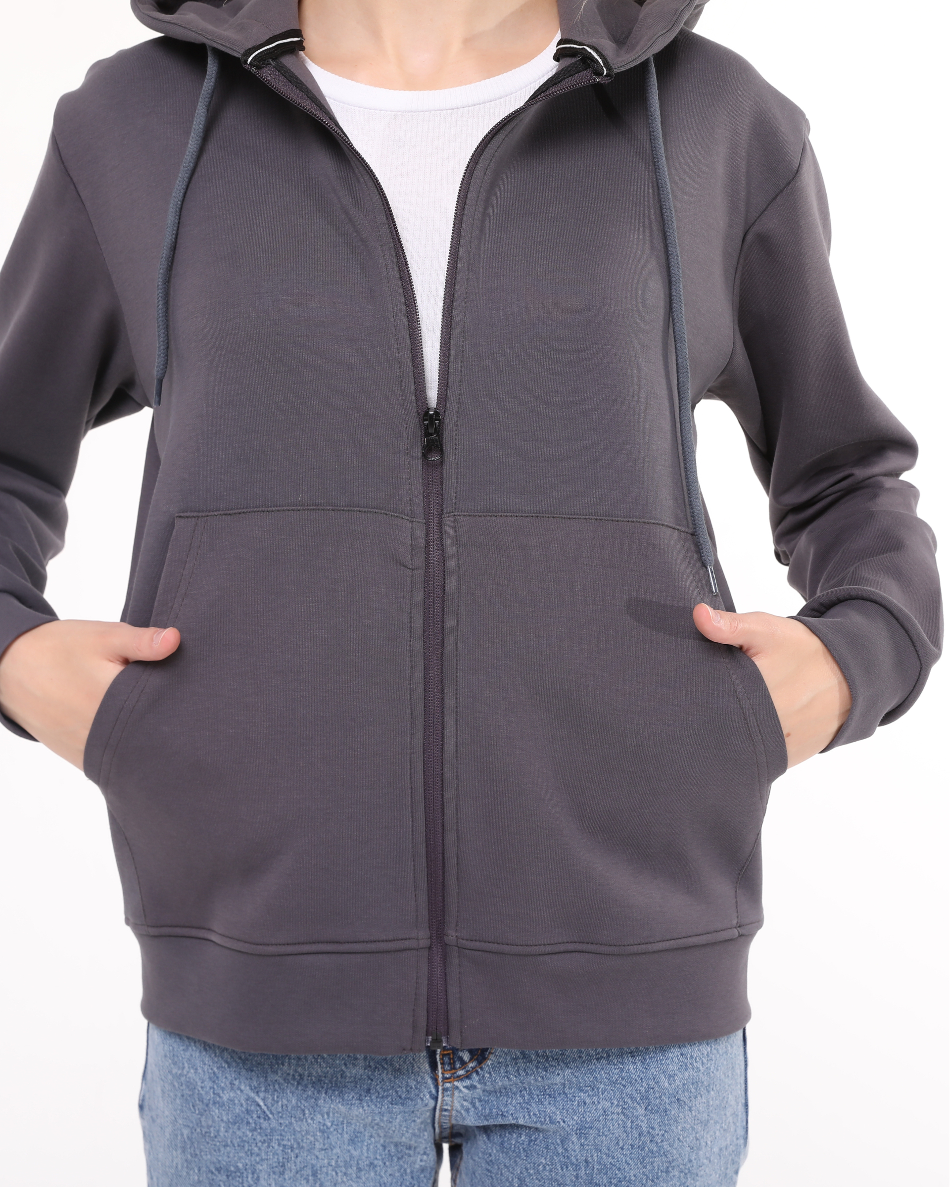 The Dark Gray Hooded Sweatshirt with Zipper is made from Double Face fabric and contains Lycra. Its durable fabric and suitability for all four seasons make it a highly preferred, high-quality sweatshirt model designed for your comfort.