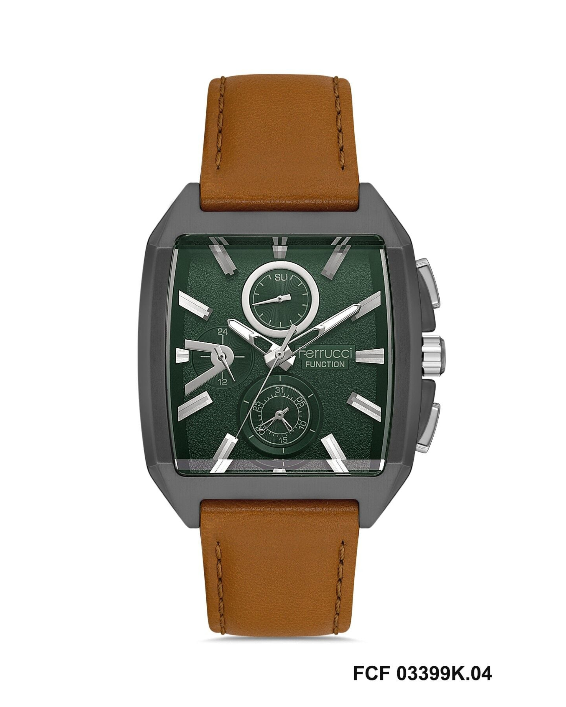 Ferrucci Stylish Men's Watch | 42 mm Steel Case, Light Brown Leather Strap, Dark Grey Dial