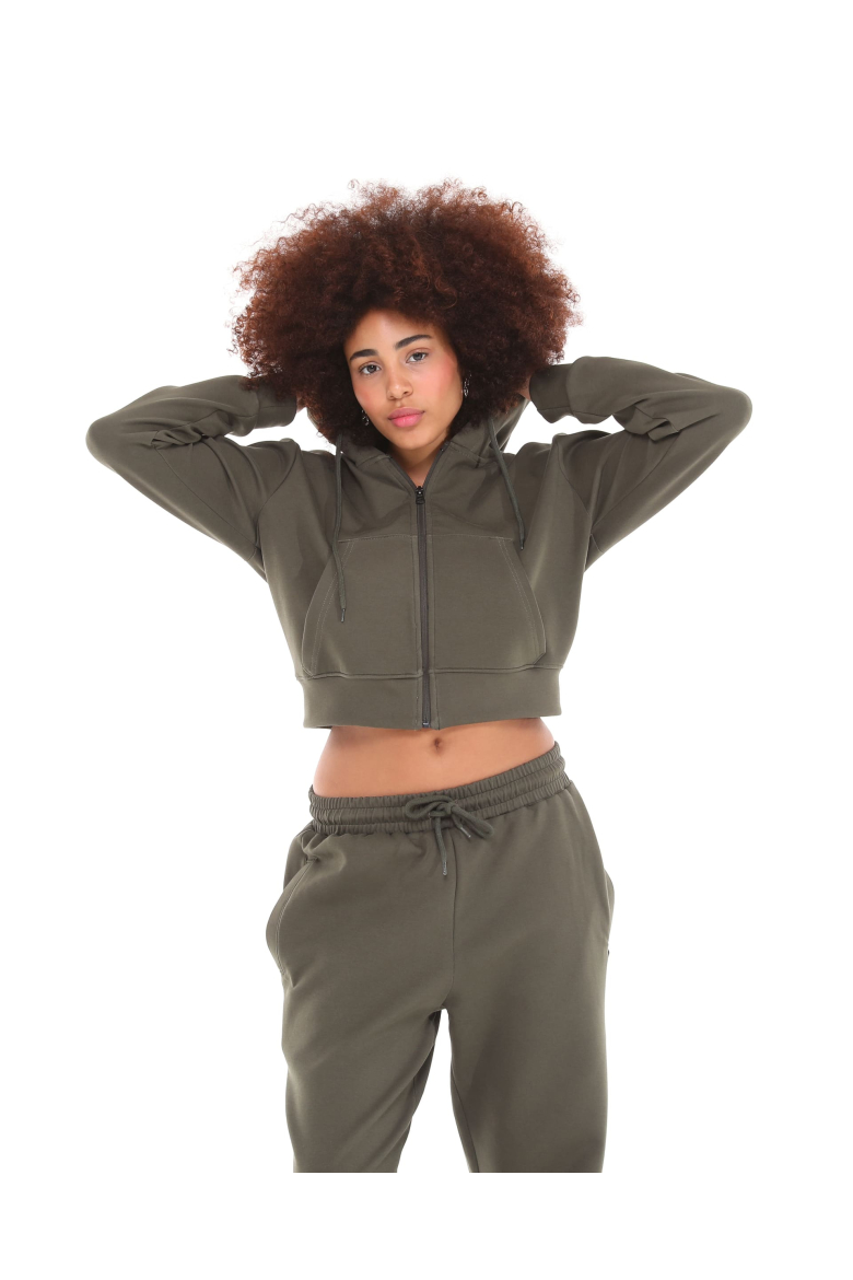 Hooded Crop Style Sweatshirt with Zipper Closure (Smoky Gray)